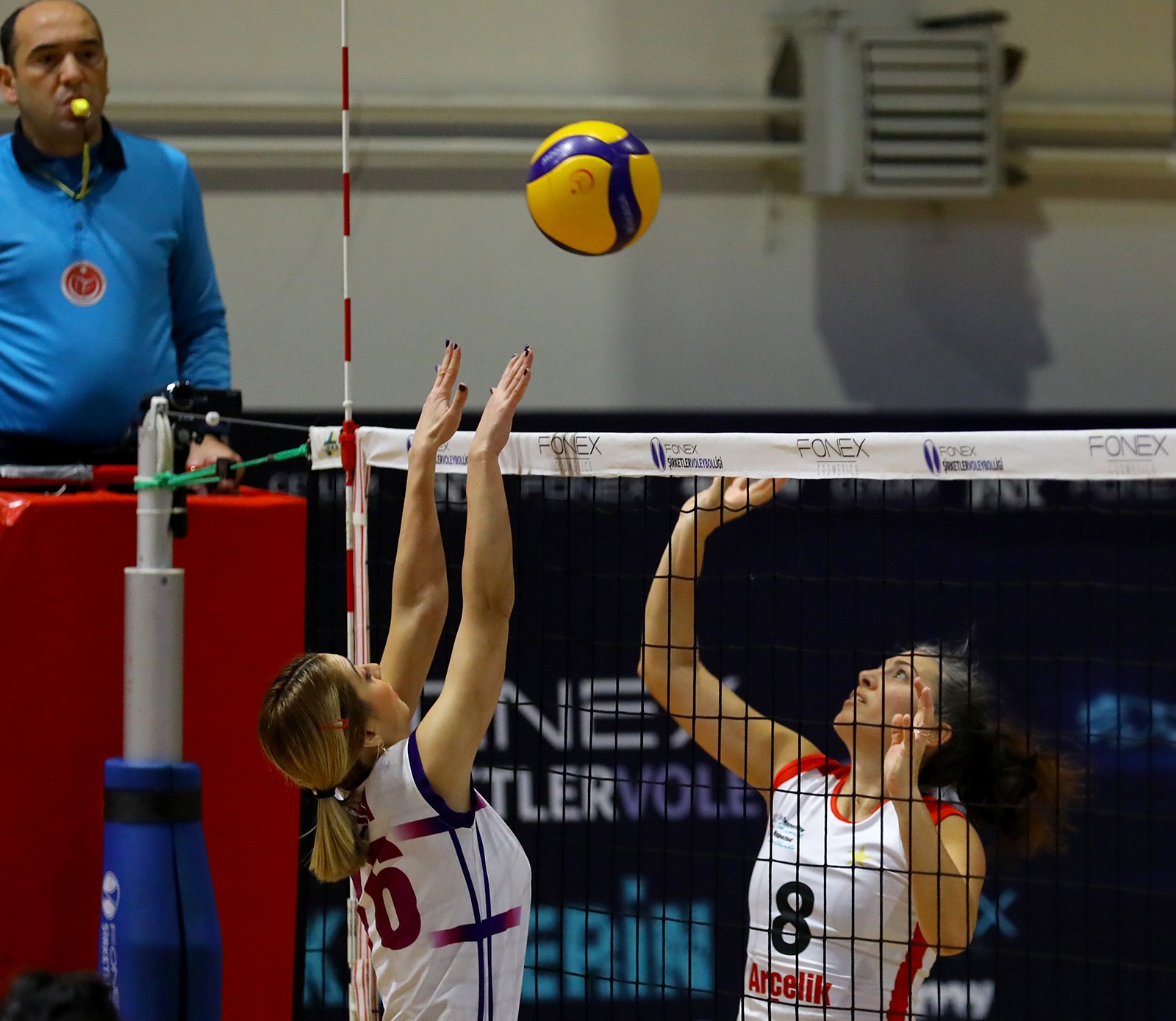 İkinci sete Begüm - Fatma ikilisinin hücumlarıyla başlayan Arçelik skoru 6-3'e taşıdı. Setin başında açılan farka müdahale edebilmek için QNB Finansbank ilk molasını kullandı. Mola dönüşü sahneye çıkan kaptan Hande'nin dörtten gelişen hücumlardaki etkisi aradaki farkı iyice açtı (13-4). Direnci kırılan QNB Finansbank Sena'nın servislerine karşı manşet alamadı (22-8). Seti Arçelik'e getiren sayı yine Sena'nın sert servisi oldu (25-8).