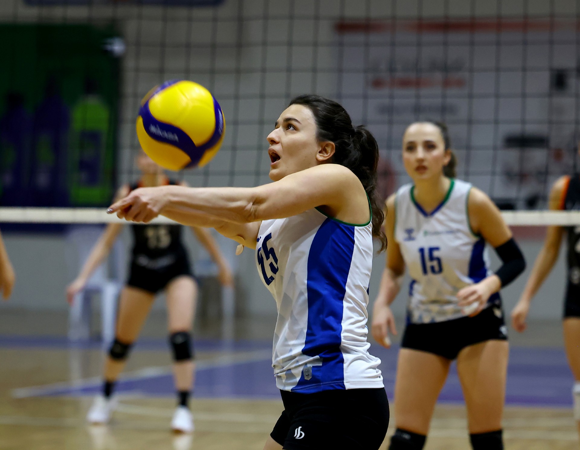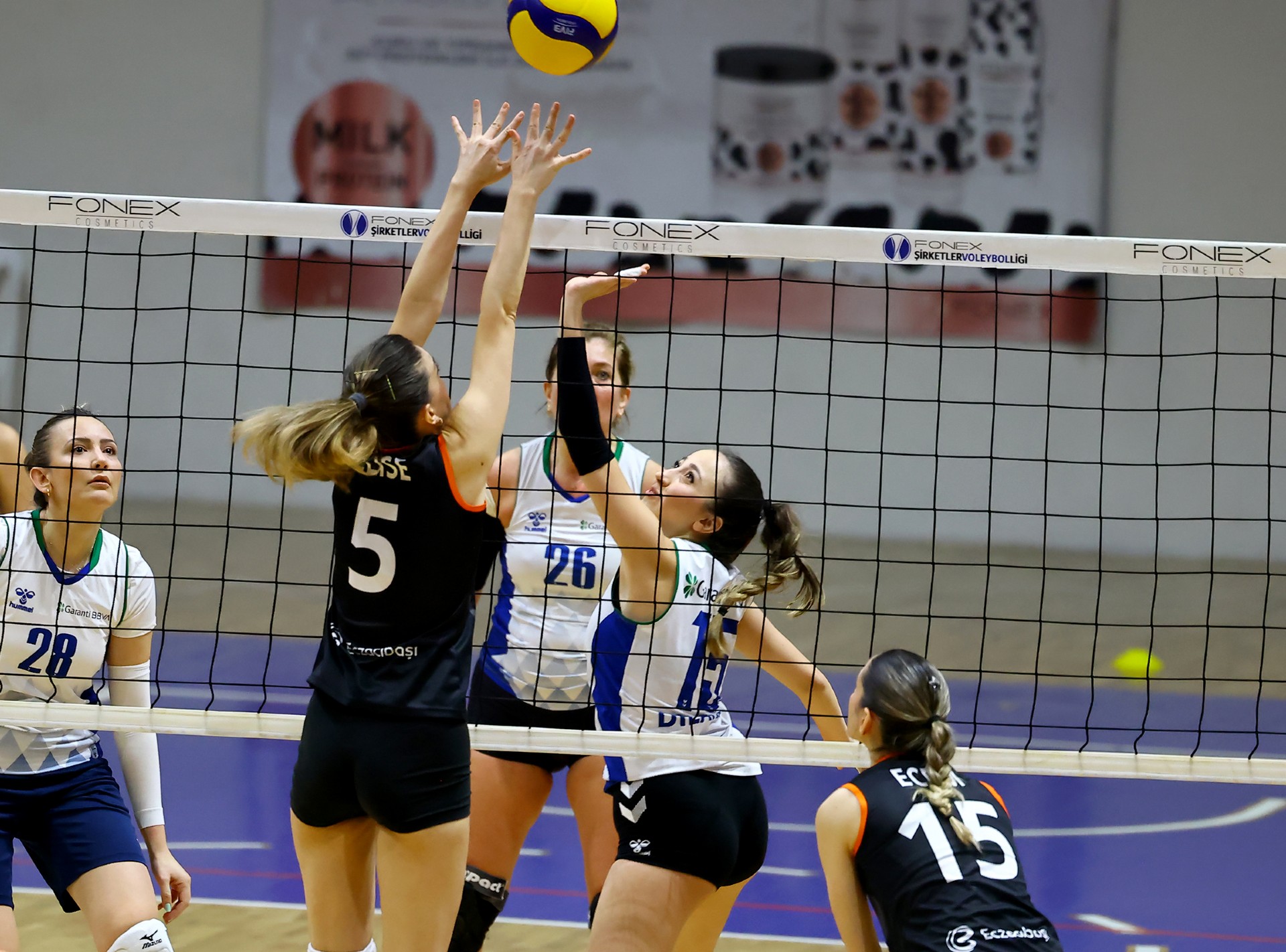 Çeyrek final mücadelesinin ilk sayısı Ecem’den geldi. Garanti BBVA’nın hatalarını iyi değerlendiren Eczacıbaşı Topluluğu, maçın başında kontrolü ele alarak skoru 1-3’e getirdi. Elif Ece’nin servis turunda üst üste üç sayı daha bulan Eczacıbaşı Topluluğu farkı altıya çıkardı, Garanti BBVA erken mola aldı (3-9). Elif Ece servislerine devam ederken gelen ace sayıları ve Elise’in katkısıyla skor 3-14’e taşındı. Bu bölümde 11 servis kullanan Elif Ece, takımının üstünlüğünü perçinledi ve skor 3-17 oldu. Garanti BBVA Melek’le nefes almaya çalışsa da (6-21), Eczacıbaşı Topluluğu temposunu düşürmedi. Yağmur ve Ecem’den gelen sayılarla skor 6-24’e gelirken, Benazir’in hücumunun auta çıkmasıyla ilk seti Eczacıbaşı Topluluğu 25-6 kazandı.