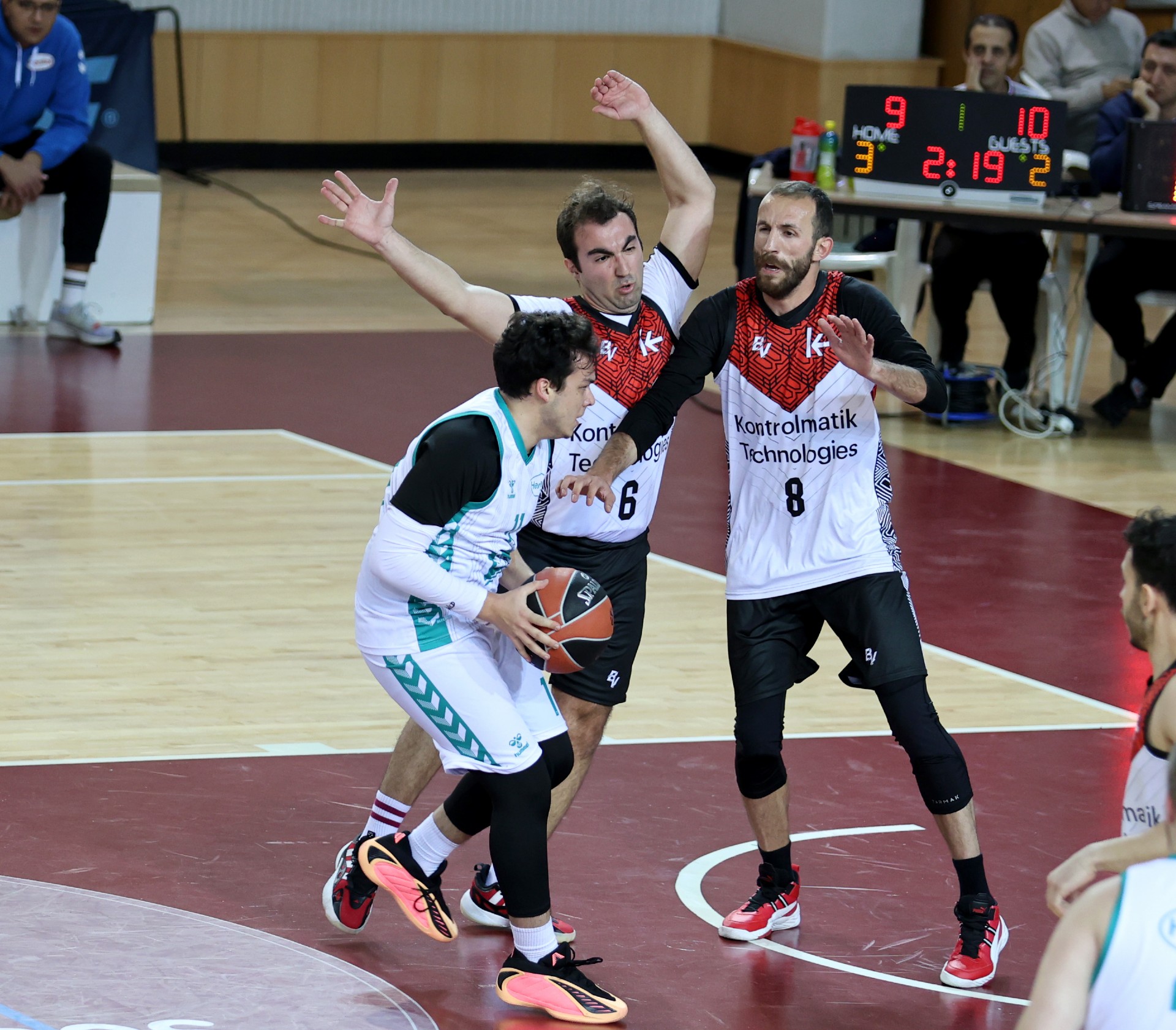 Hardline Şirketler Basketbol Ligi’nin dördüncü çeyrek final karşılaşması büyük bir heyecana sahne oldu. Henkel ile Kontrolmatik’in karşı karşıya geldiği mücadelede kazanan, son anlara kadar belli olmadı. Karşılaşmayı 12-10’luk skorla kazanan Henkel, adını yarı finale yazdırdı.