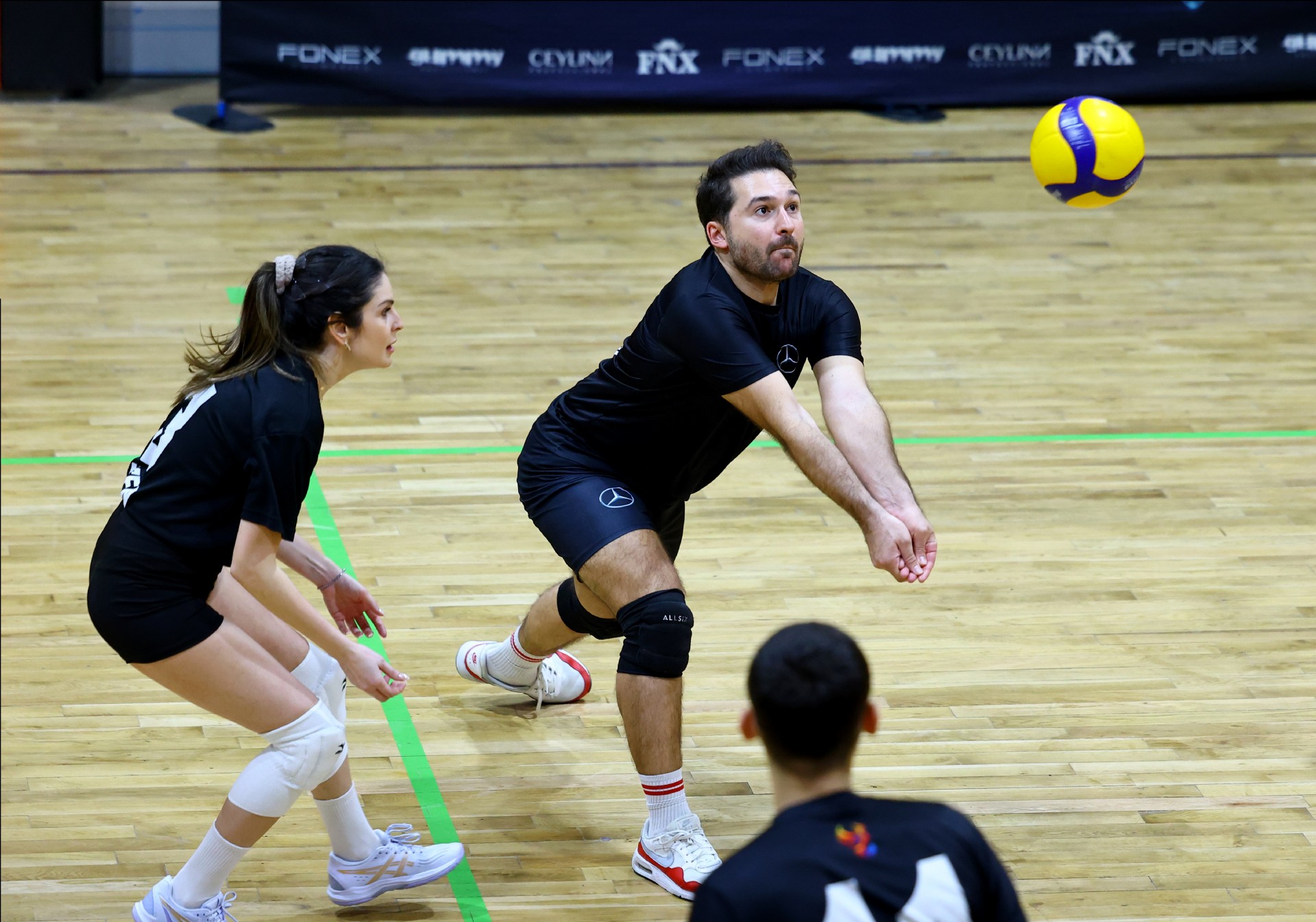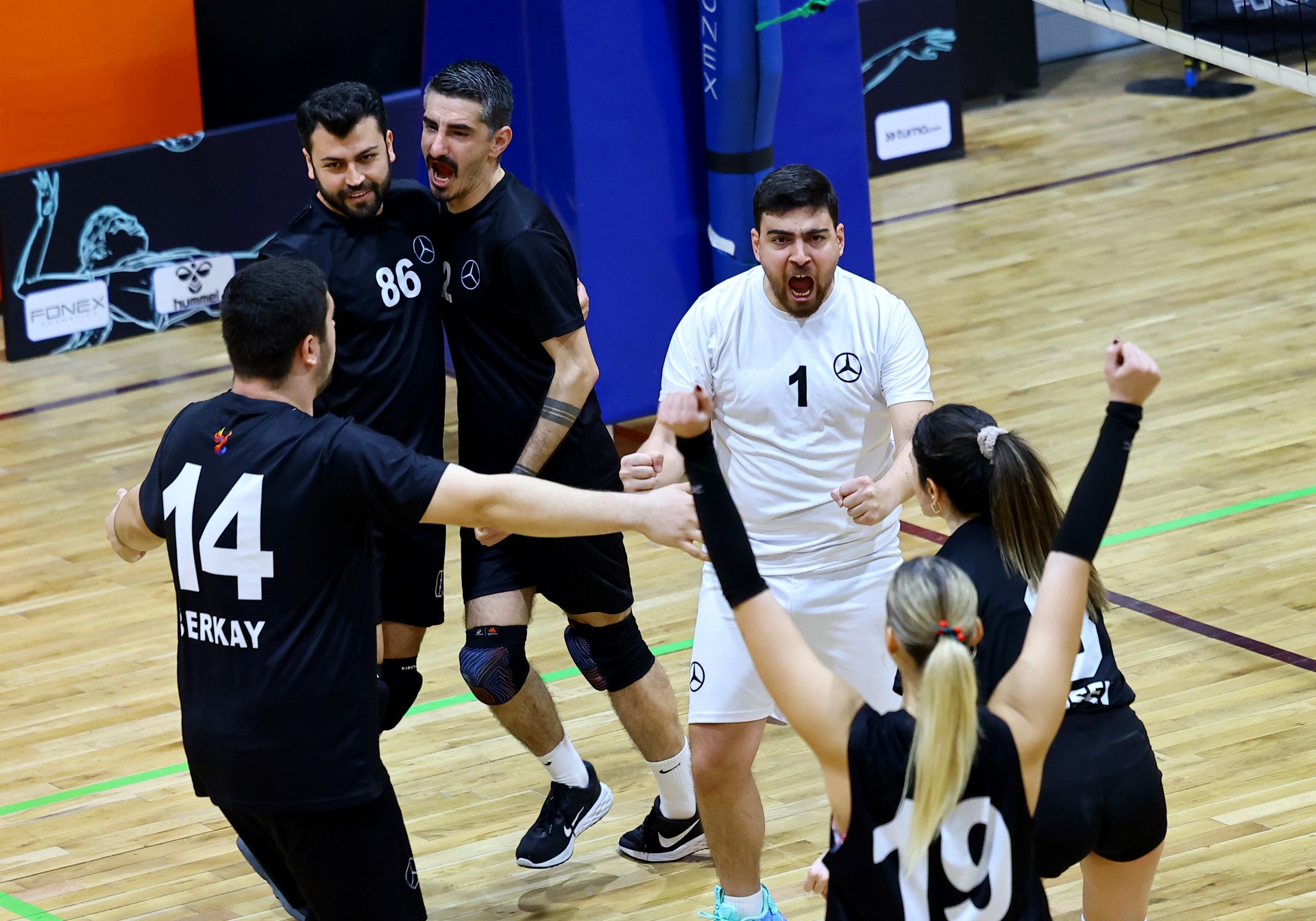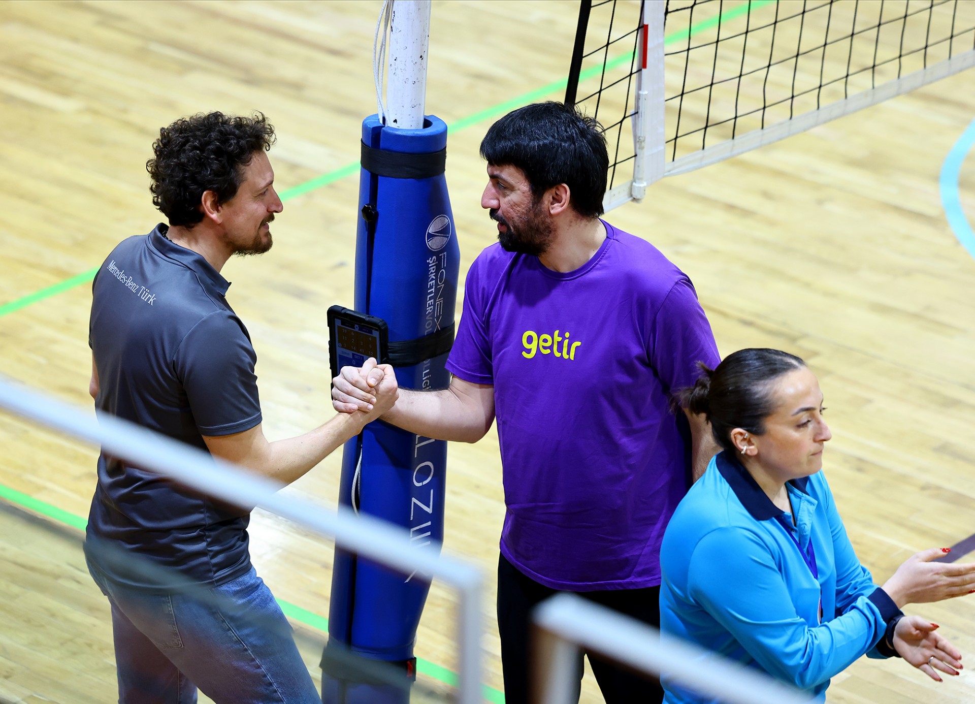 Maça Berkay’ın servis sayısı ile başladı, Defne karşılık verdi, dörtten yaptığı hücuma iyi manşet çıkmayınca 1-1 oldu. Karşılıklı sayılar devam etti, Selen ve Hasan ile ritim bulan Mercedes-Benz Türk skoru 6-3 yapınca, Getir mola aldı. Getir Taner’in sayıları ve rakibinin hataları sonucu sayı üretse de, Mercedes-Benz Türk bu setteki hızını kesmedi, Rasim-Berkay ve Selen’den gelen sayılarla ilk seti 25-17 kazanarak öne geçti.