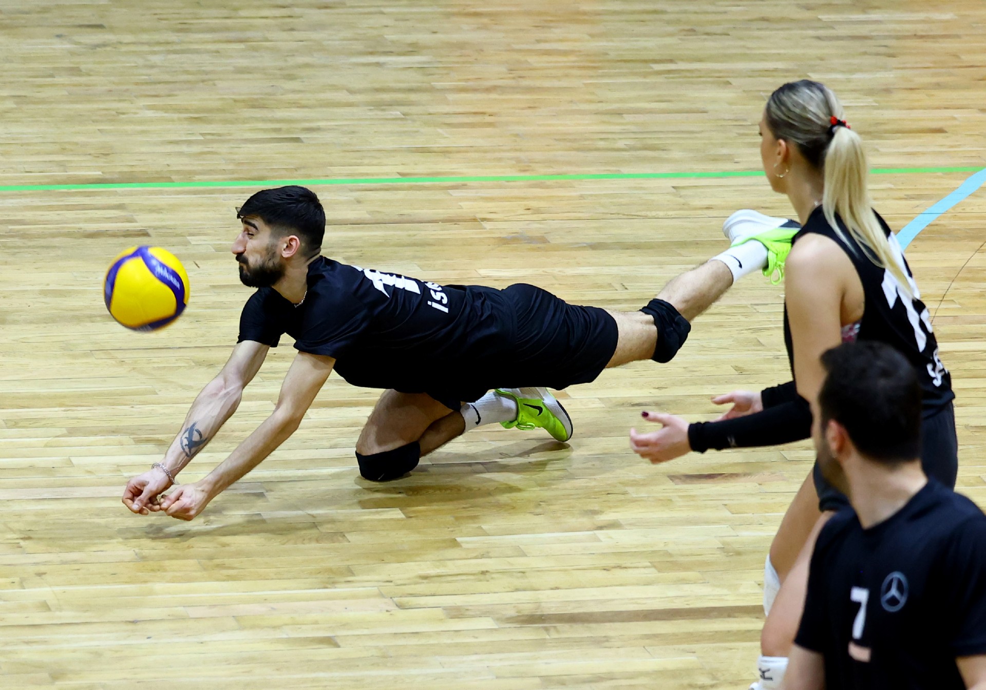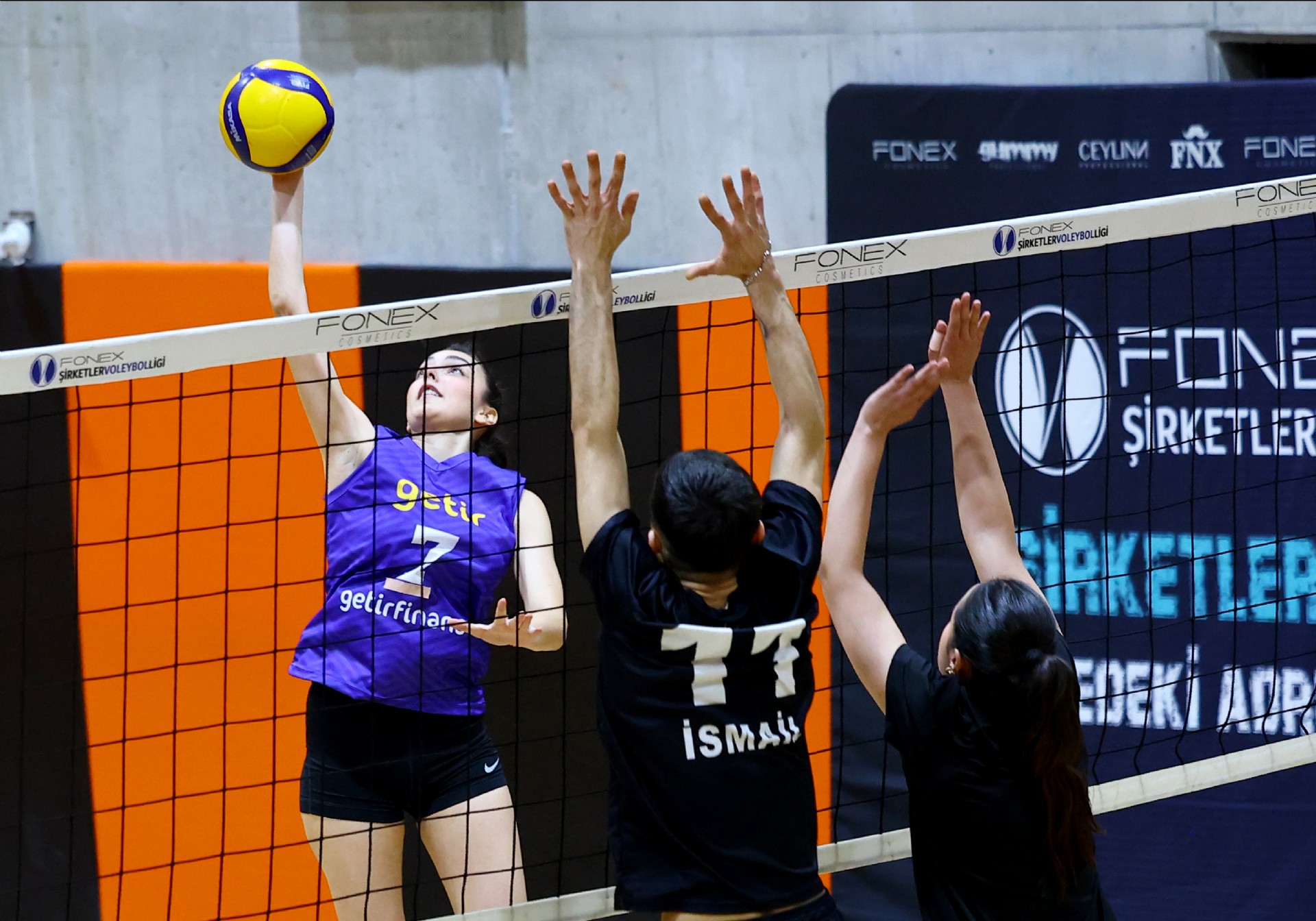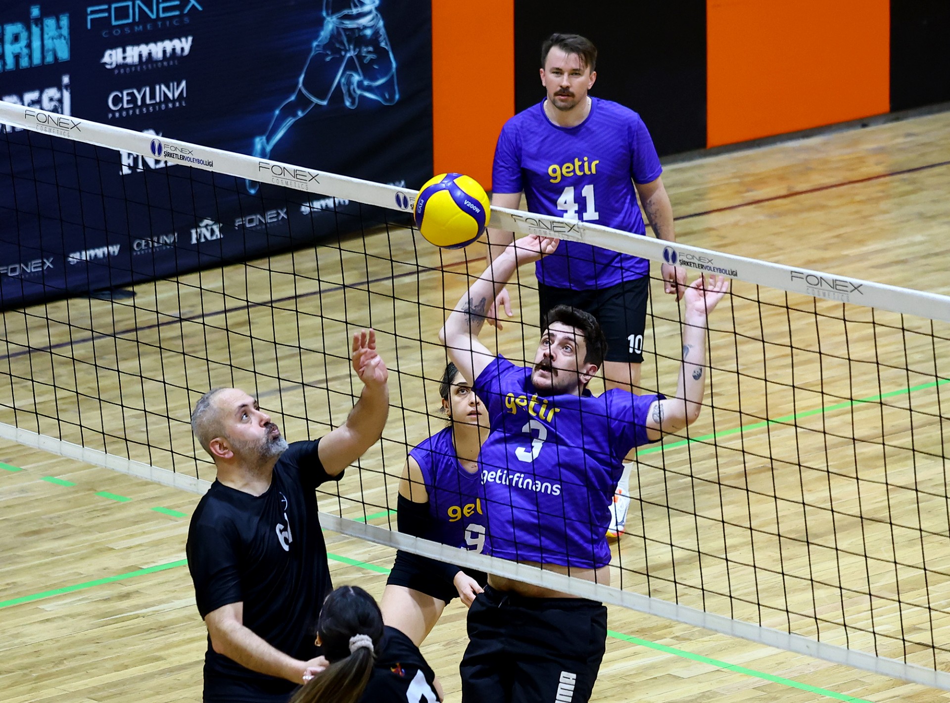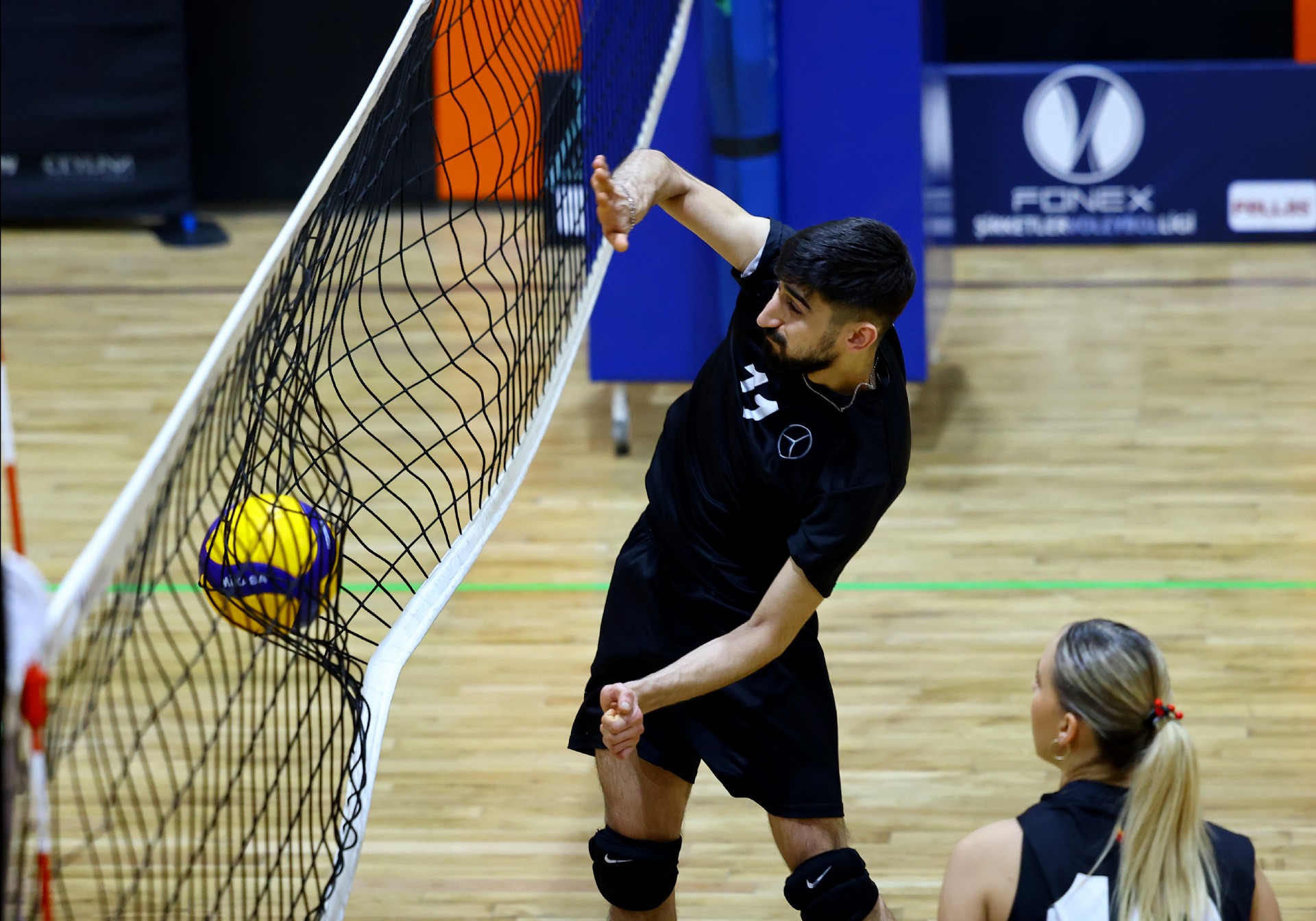 Maça Berkay’ın servis sayısı ile başladı, Defne karşılık verdi, dörtten yaptığı hücuma iyi manşet çıkmayınca 1-1 oldu. Karşılıklı sayılar devam etti, Selen ve Hasan ile ritim bulan Mercedes-Benz Türk skoru 6-3 yapınca, Getir mola aldı. Getir Taner’in sayıları ve rakibinin hataları sonucu sayı üretse de, Mercedes-Benz Türk bu setteki hızını kesmedi, Rasim-Berkay ve Selen’den gelen sayılarla ilk seti 25-17 kazanarak öne geçti.