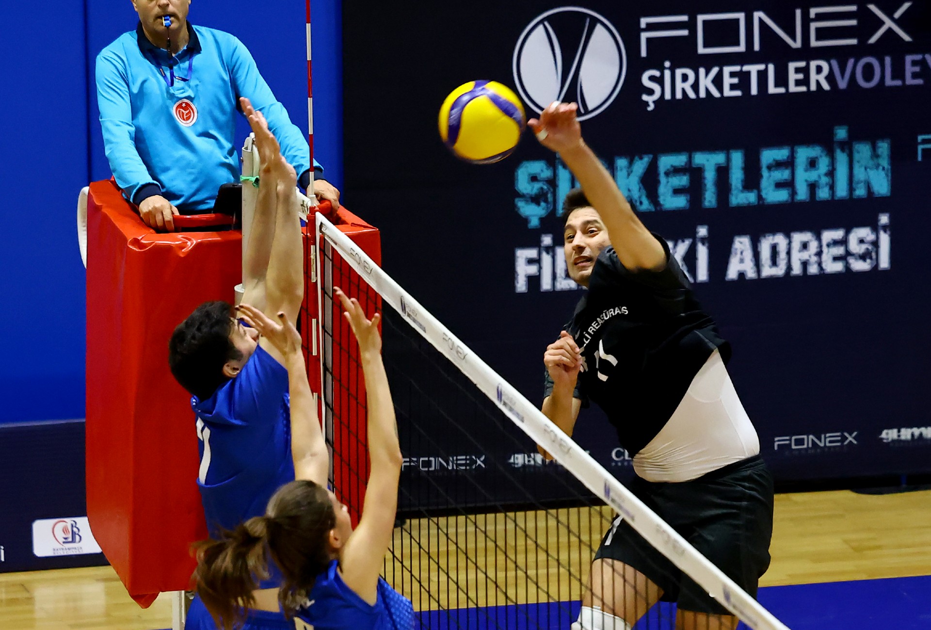Üçüncü sete de moralli başlayan Milli Reasürans setin başında skoru 4-0’a getirdi. Bora’nın serviste olduğu bölümde üst üste sayı alan Türk Telekom, Uğur’un ortadan hücumu ile skoru eşitleyen sayıyı aldı (4-4). Karşılıklı sayılar devam ederken Deniz’in ikiden çapraza yaptığı hücumla Milli Reasürans skoru 7-5’e taşıdı. Milli Reasürans’ın yaptığı iyi savunma sonrası Türk Telekom’dan basit bir hata geldi (11-7). Kaçan servisin ardından Uğur ace yaptı (11-9). Pelin file üstünde kalan topu sayıya çevirdi (13-10). Deniz’in sert smacı ardından Hüseyin’in blok sayısıyla fark beşe çıkınca Türk Telekom setteki ilk molasını kullandı (15-10). Türk Telekom mola sonrası sayılar bulsa da Milli Reasürans’da karşılık verince fark altı sayıya çıktı (19-13). Disiplini elden bırakmayan Milli Reasürans oyun üstünlüğünü maç sonuna taşıdı. Gülce-Pelin ikili bloğuyla set ve maç sona ererken Milli Reasürans set vermeden yarı finale çıktı (25-16).