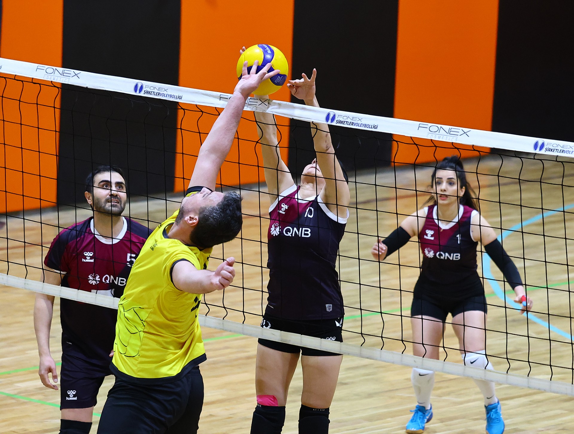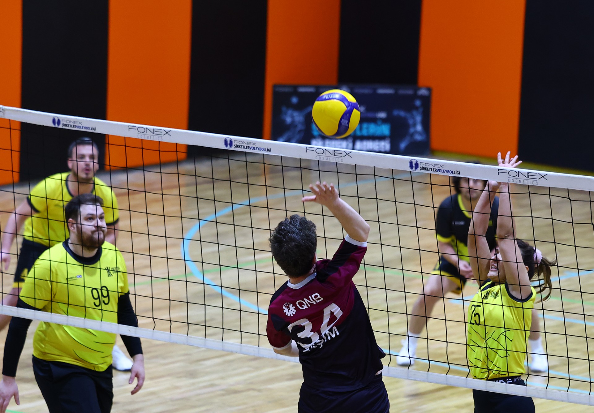 Dördüncü sete hızlı başlayan EnerjiSa Enerji, Berkhan ve Olkan’ın sayılarıyla 0-3 öne geçti. Ancak Berkan’ın servis turunda toparlanan QNB, Haşim ve Caner’in hücumlarıyla önce eşitliği yakaladı, ardından öne geçti (4-3). 8-8’e kadar dengede giden sette QNB’nin hatalarını iyi değerlendiren EnerjiSa Enerji, Berkhan’ın katkısıyla farkı üçe çıkardı (8-11). QNB, Berkan’ın hücumu ve Canan’ın servis sayılarıyla farkı eriterek 11-12’ye getirdi. Caner’in plasesi sonrası skor yeniden eşitlendi (14-14). Bu bölümde seri yakalayan QNB, 14-17 geriden gelerek 18-17 öne geçti. Pınar’ın servis turunda rakibin hatalarını da değerlendiren QNB farkı açtı (20-17). Ancak EnerjiSa Enerji pes etmedi ve 21-21’de yeniden dengeyi sağladı. Batuhan’ın ortadan hücumuyla öne geçen EnerjiSa Enerji (21-22), 23-23 sonrası Ali’nin kritik plasesiyle set için avantaj yakaladı. Son bölümde yaşanan anlaşmazlık sonrası sayıyı alan EnerjiSa Enerji, seti 23-25 kazanarak maçı final setine taşıdı.