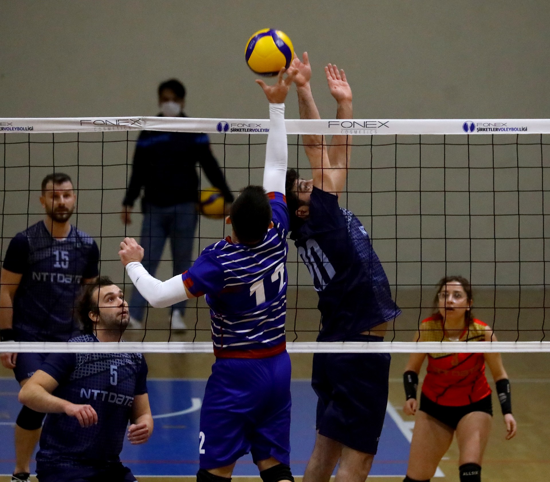 Maçı koparmak isteyen QNB Finansbank savunmada direnç ortaya koyarak rakibini oyundan düşürmek istedi ancak NTT Data, Sinan'ın etkili servisleriyle buna izin vermedi. Batuhan'ın file önünde hücuma katkı sağlamasıyla lacivert mavililer öne geçti. Tribün desteğini de arkasına alan NTT Data maçı kolay bırakmayacağını göstermeye çalıştı. Skor 17-15'e gelince molaya giden NTT Data, moladan sayıyla döndü. Skor 18-16'da iken oynanan ralli görülmeye değerdi. NTT Data'da Berfin'in 3 kez arka arkaya aldığı manşetler izleyenlerden alkış aldı. Set sonunu daha az hatayla geçen QNB Finansbank maçı 3-0 bitirmeyi başardı (25-20).