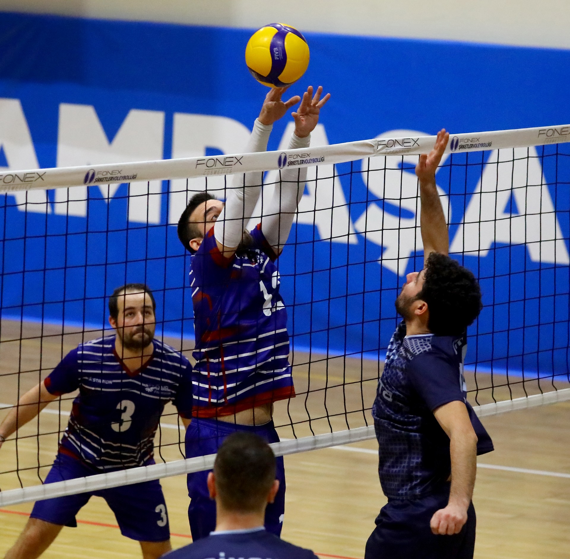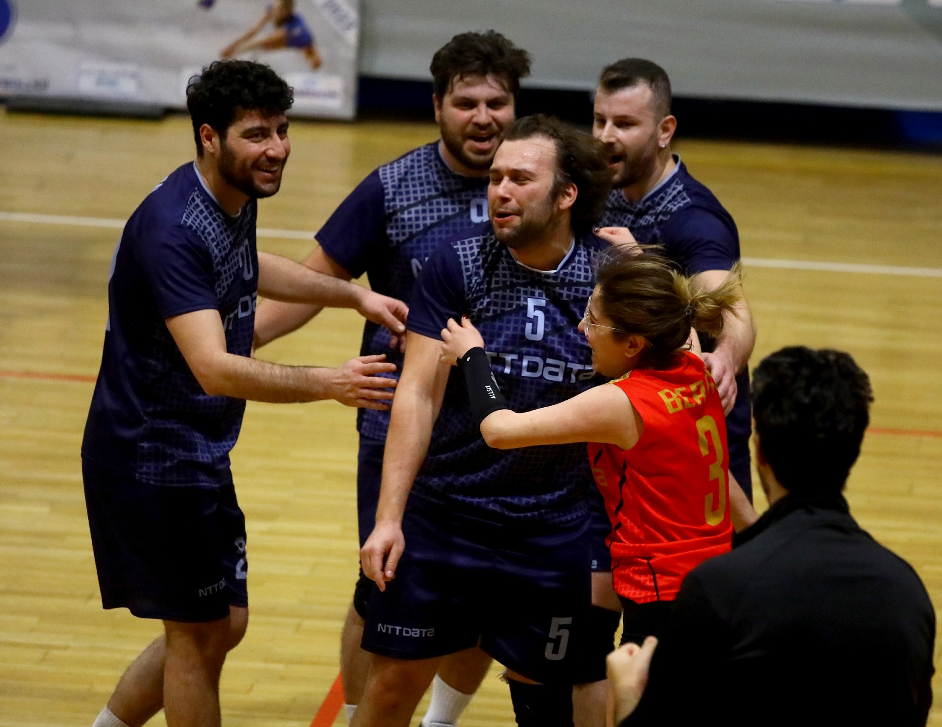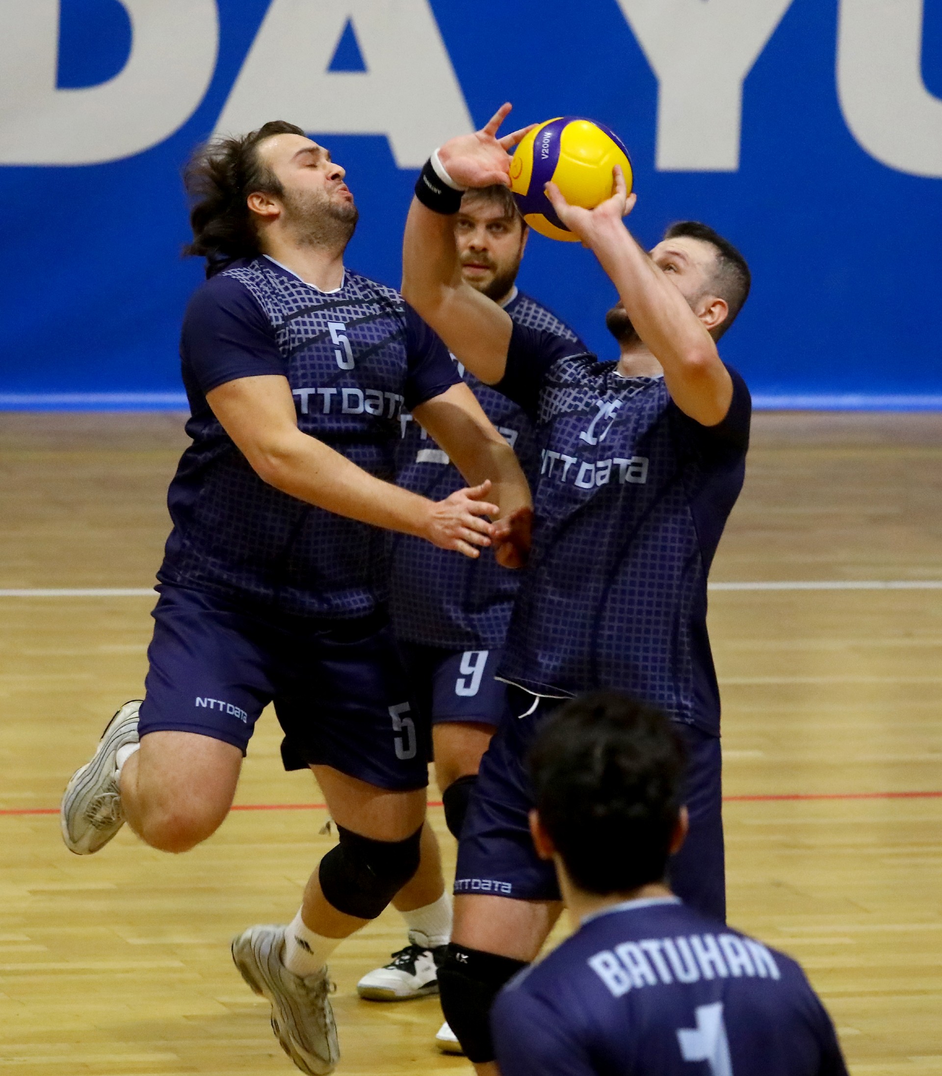 QNB Finansbank maça etkili bir giriş yaptı ve 5-0'lık seriyle rakibine erken mola aldırdı. Mola sonrası Batuhan'ın çapraza sert gönderdiği toplardan sayı çıkarmaya başlayan NTT Data farkı eritmeye başladı. Serkan'ın file önünde bitirdiği sayılar QNB Finansbank'a avantaj getirirken Oğuzhan'ın etkili servisleri NTT Data'yı ayakta tuttu. Emre Can'ın ekstra çabası ve enerjisi NTT Data'yı öne geçirdi (18-19). Özer Tunalı'nın molası sonrası ateşlenen QNB Finansbank, bir anda öne geçip farkı 3'e çıkardı. Son sayılarda hata yapmayan QNB Finansbank ilk seti 25-20 kazanmayı başardı.