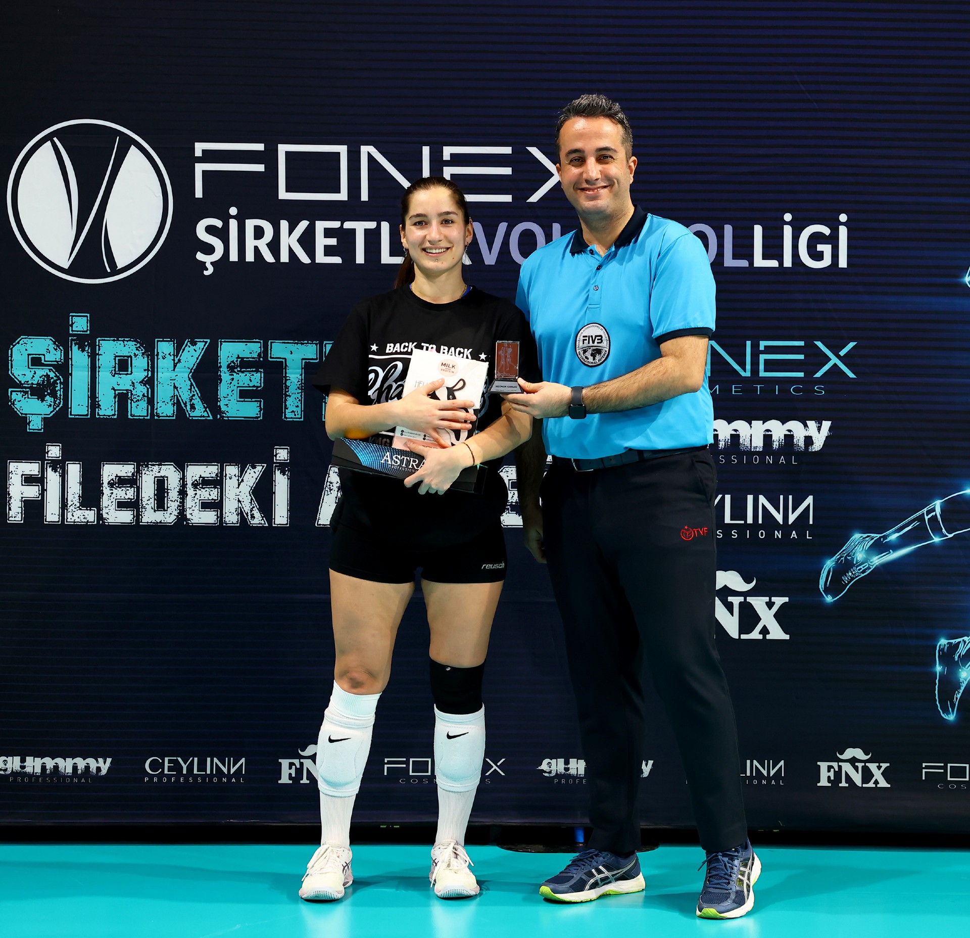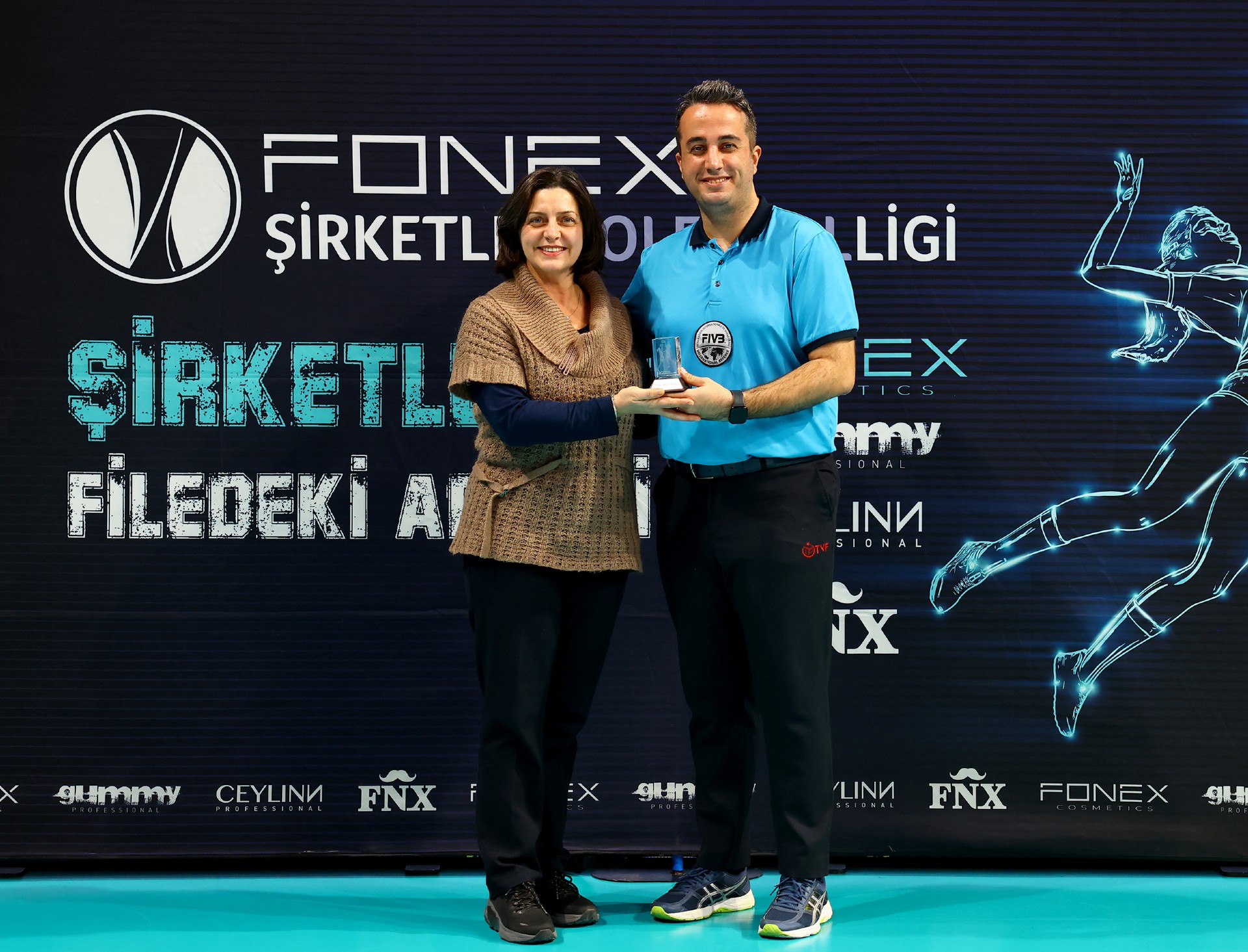 Törende ödülleri TVF İstanbul İl Temsilcisi Ahmet Bülent Kırmızı ve Uluslararası Hakemimiz Ramazan Çevik ve Marmara Hakem ve Gözlemciler Konfederasyonu üyesi Ayçe Kestek takdim ettiler.