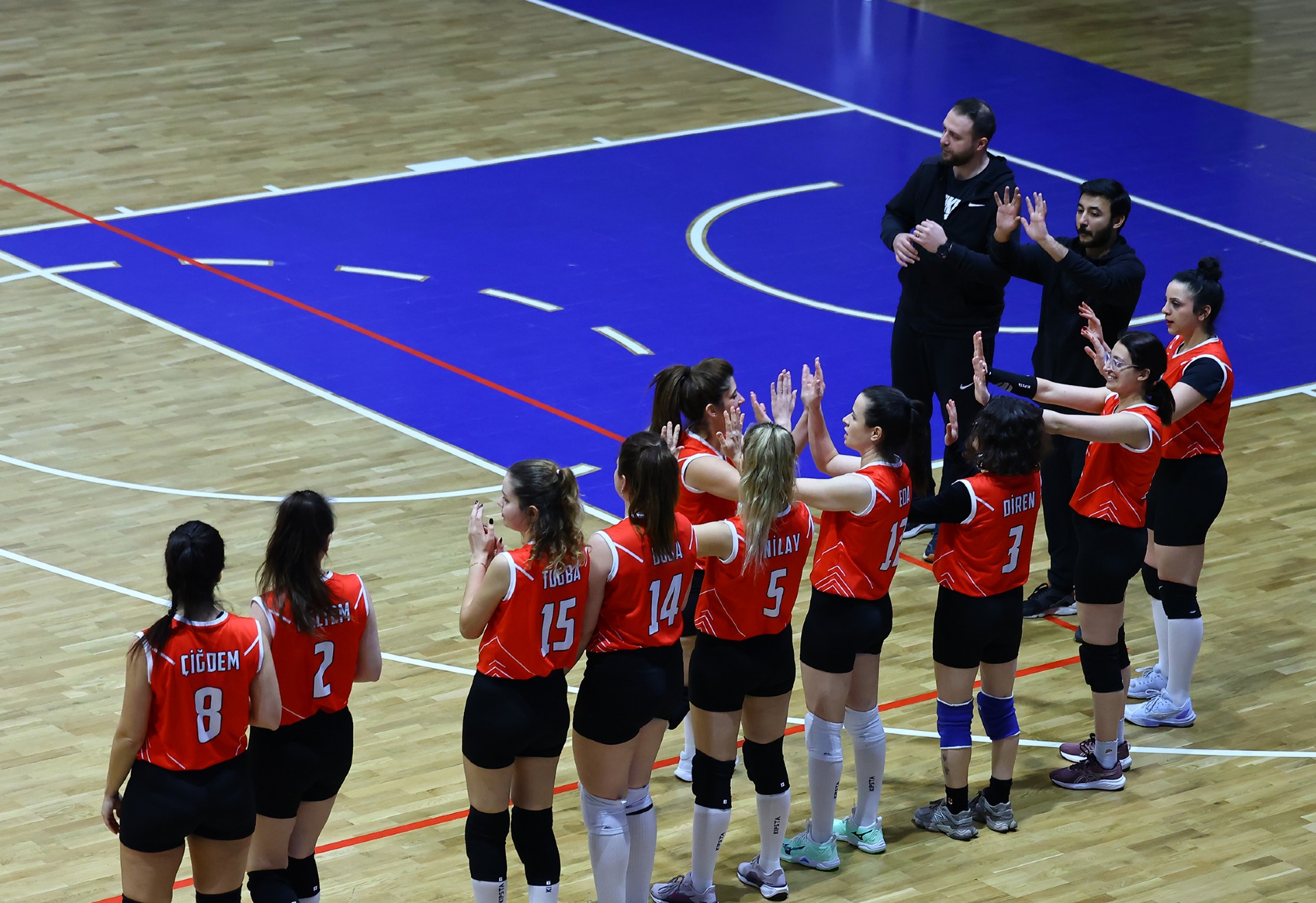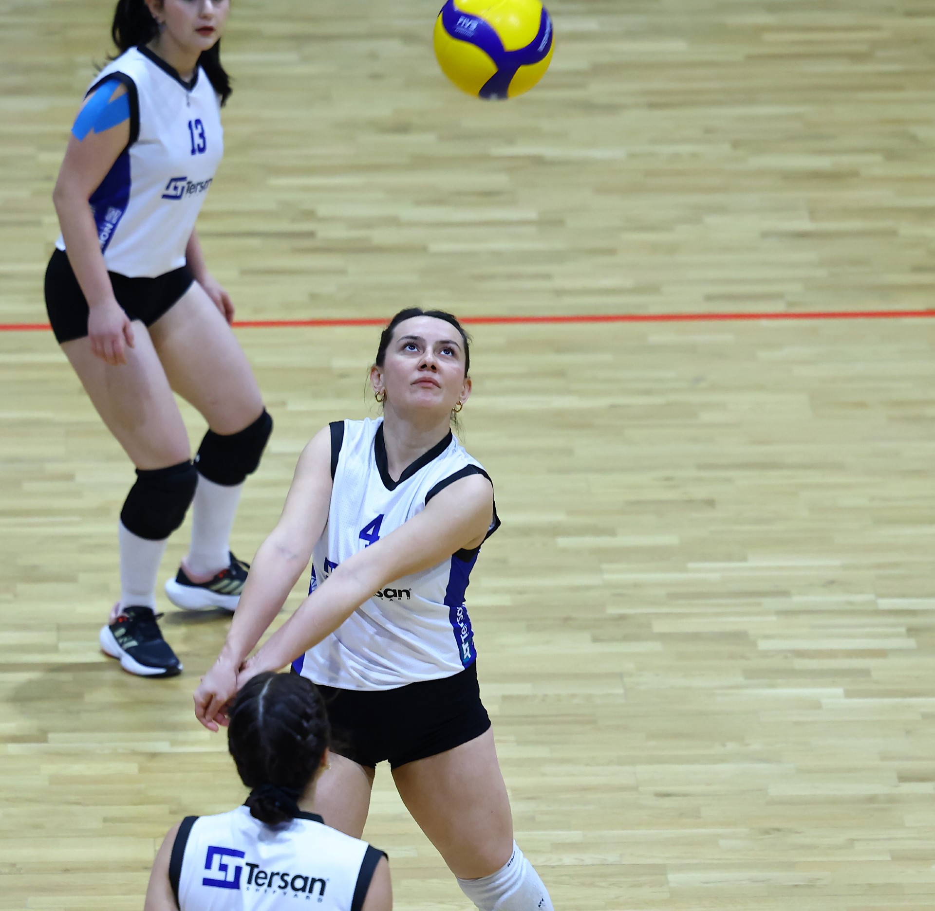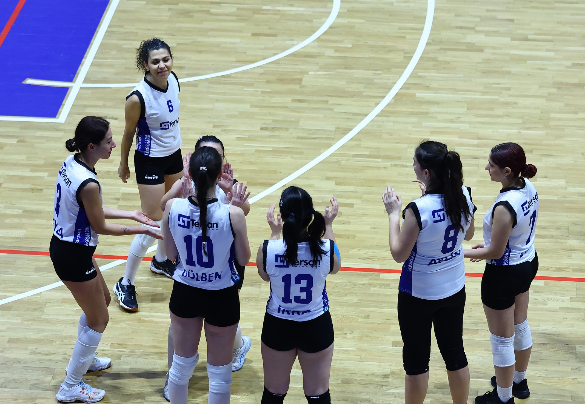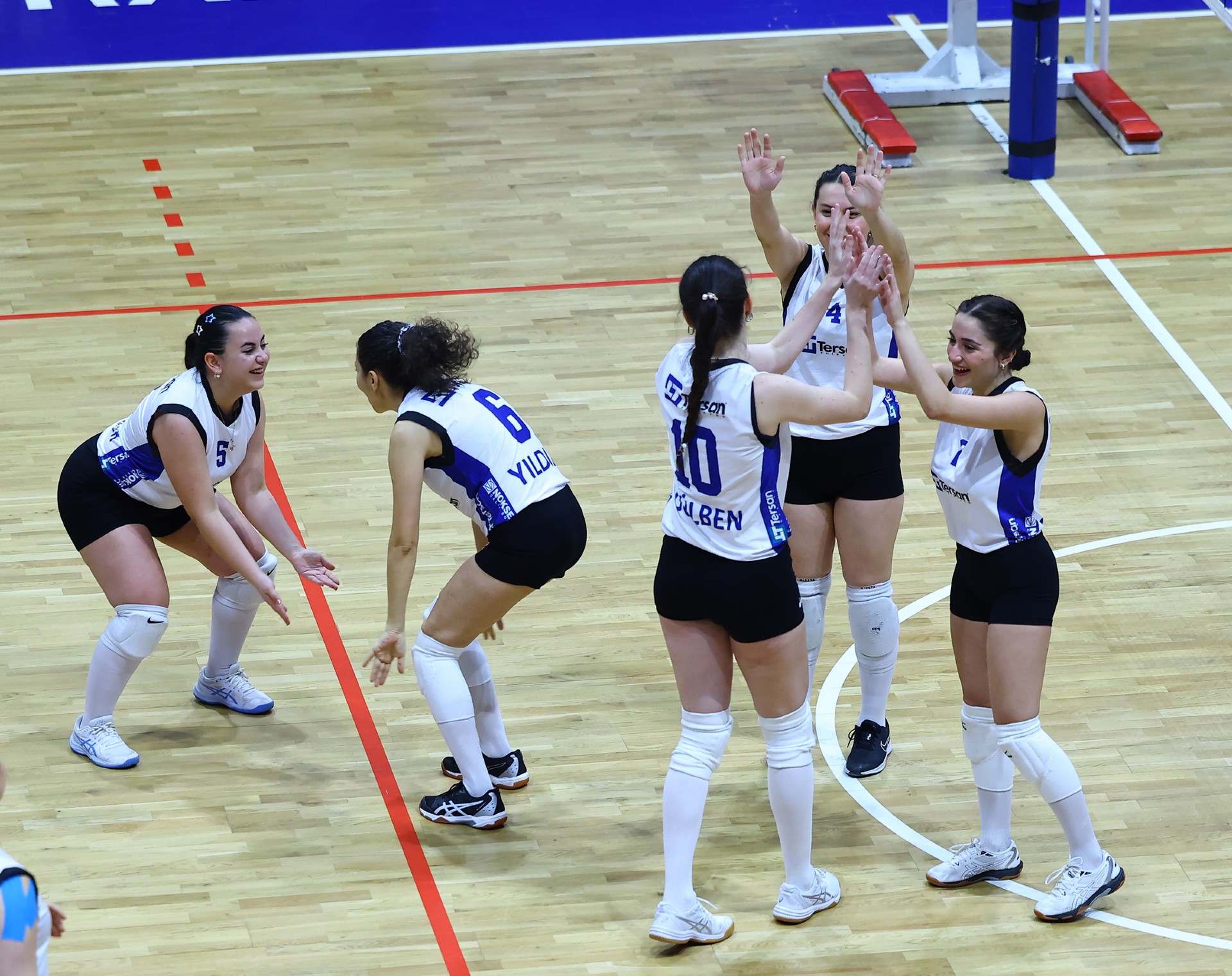 Müsabakada ilk sayıyı Tersan aldı. Gülben’in üst üste hücumlarıyla setin başında durum 3-1’e geldi. Petrol Ofisi Tuğba ile karşılık verdiği bölümde Tersan, Gülben’le sayılar bulmaya devam ederek tabloyu 6-2’ye taşıdı. Zeliha’dan gelen ardışık hücumlarla fark beşe çıktı, Gülben’in katkısıyla aradaki mesafe yedi sayıya kadar yükseldi (10-3). Berfin’den gelen üst üste servis sayılarıyla fark üçe indi (10-7). Gülben’in öne çıktığı anlarda etkili bir oyun sergileyen Tersan, Zeliha’nın çaprazdan başarılı hücumlarıyla üstünlüğünü yeniden beşe çıkardı (14-9). Zeliha’dan gelen ace sonrası Tersan set için servise geçti (24-19). Gülben’in dörtten hücumunun isabetli olmasıyla ilk seti Tersan 25-19 kazandı.