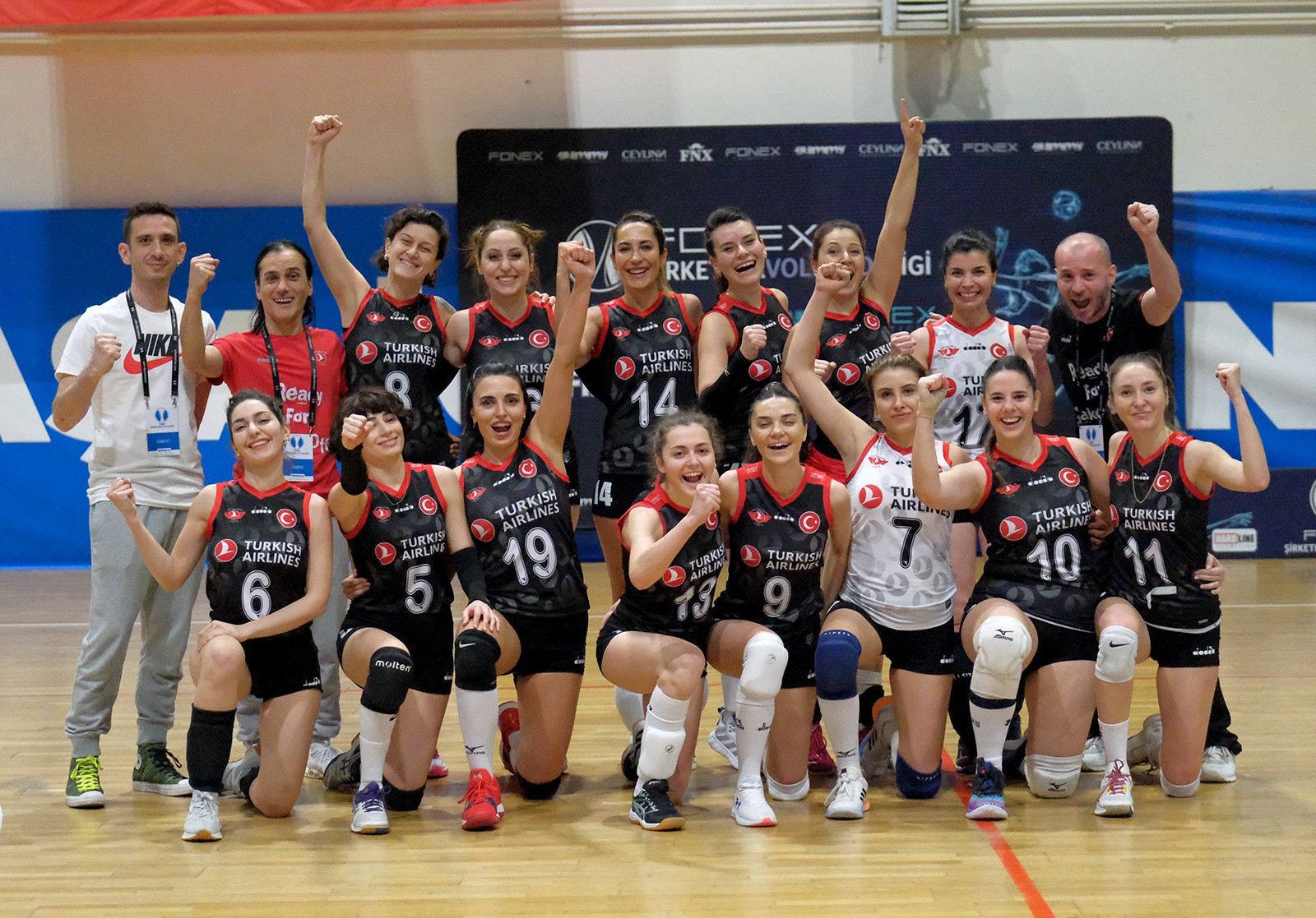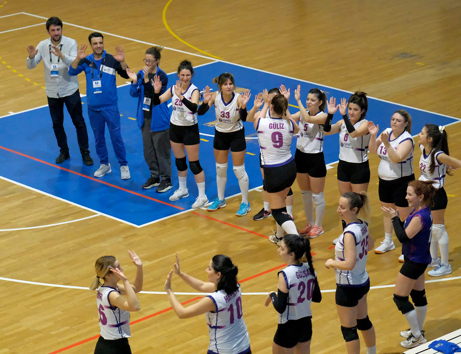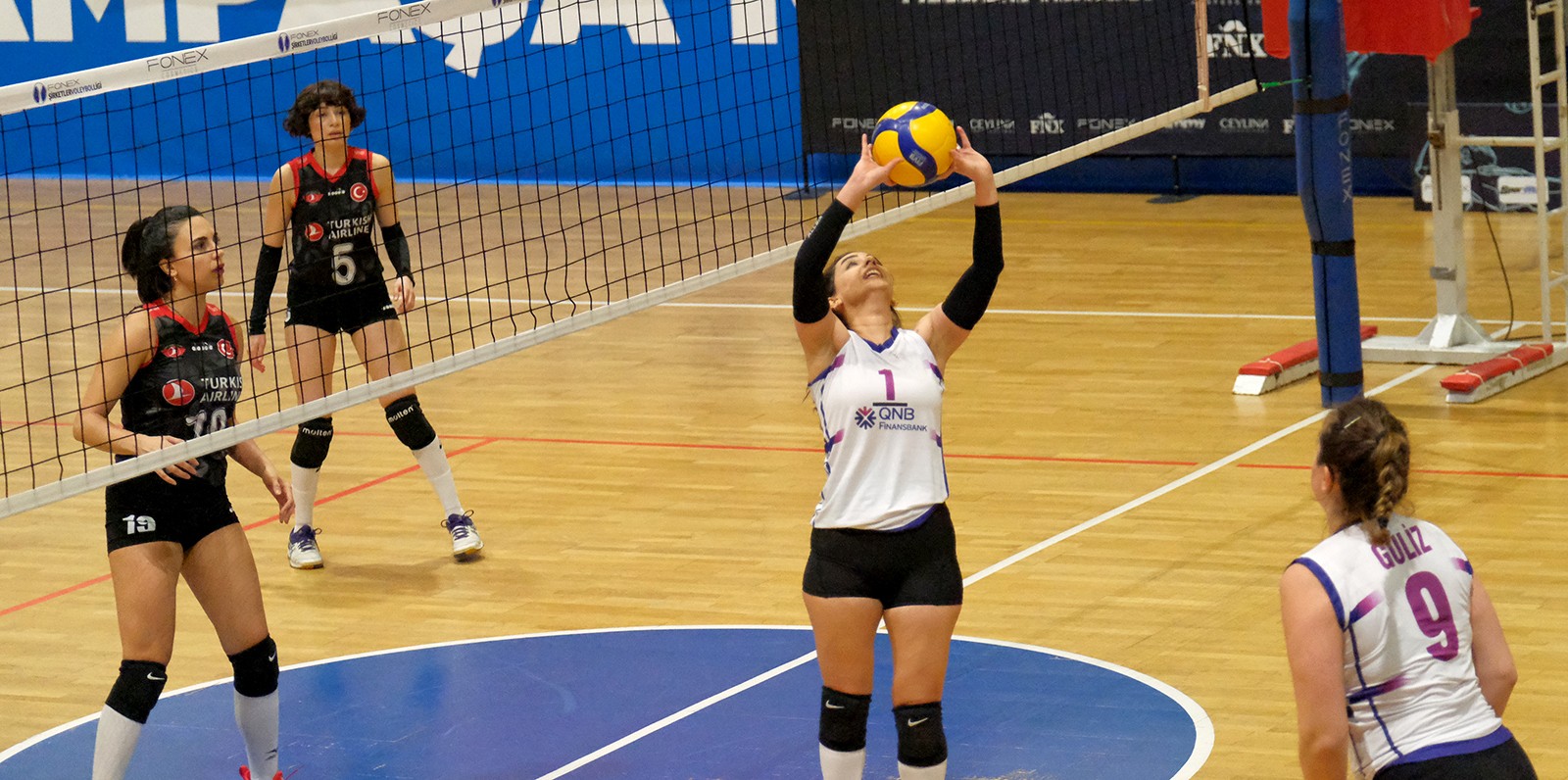 Müsabakaya iki takım da çok istekli başladı skor 5-5 oldu. İki takım da iyi savunma yapınca oyunda denge değişmedi (8-8). İrem hücum hattında öne çıktı ve QNB Finansbank savunmasını zorlamaya başladı (15-11) Özer Tunalı ise bu durumuna müdahale etmek için mola aldı. Mola dönüşü Buse'nin servisleriyle THY uçuşa geçti ve aradaki farkı on bir sayıya çıkarttı, (21-11) QNB Finansbank ikinci molasını kullandı. Özer Tunalı'nın ikinci mola hamlesi de setin dengelerini değiştirmedi ve Ezgi'nin ortadan hücumuyla set sona erdi (25-12).