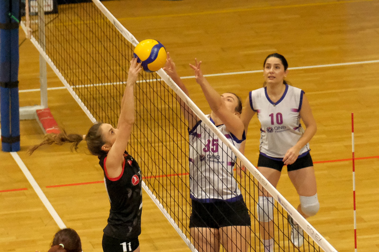 İlk iki seti kazanan THY yüksek moralle üçüncü sete girdi (5-0). QNB Finansbank ise etkili savunmasından uzak bir görüntü çizdi (10-1). Özer Tunalı mola istedi. Mola THY serisini sonlandırdı ama hızını kesmedi (12-2). Sakatlığı sebebiyle libero olarak maça çıkan kaptan Buket yine lövyenin başında gibiydi. İrem-Ezgi hücumlarına Buse de servisleriyle destek olunca skor 21-6'ya geldi. Ezgi'nin plasesiyle set va maç THY'nin oldu (25-10).