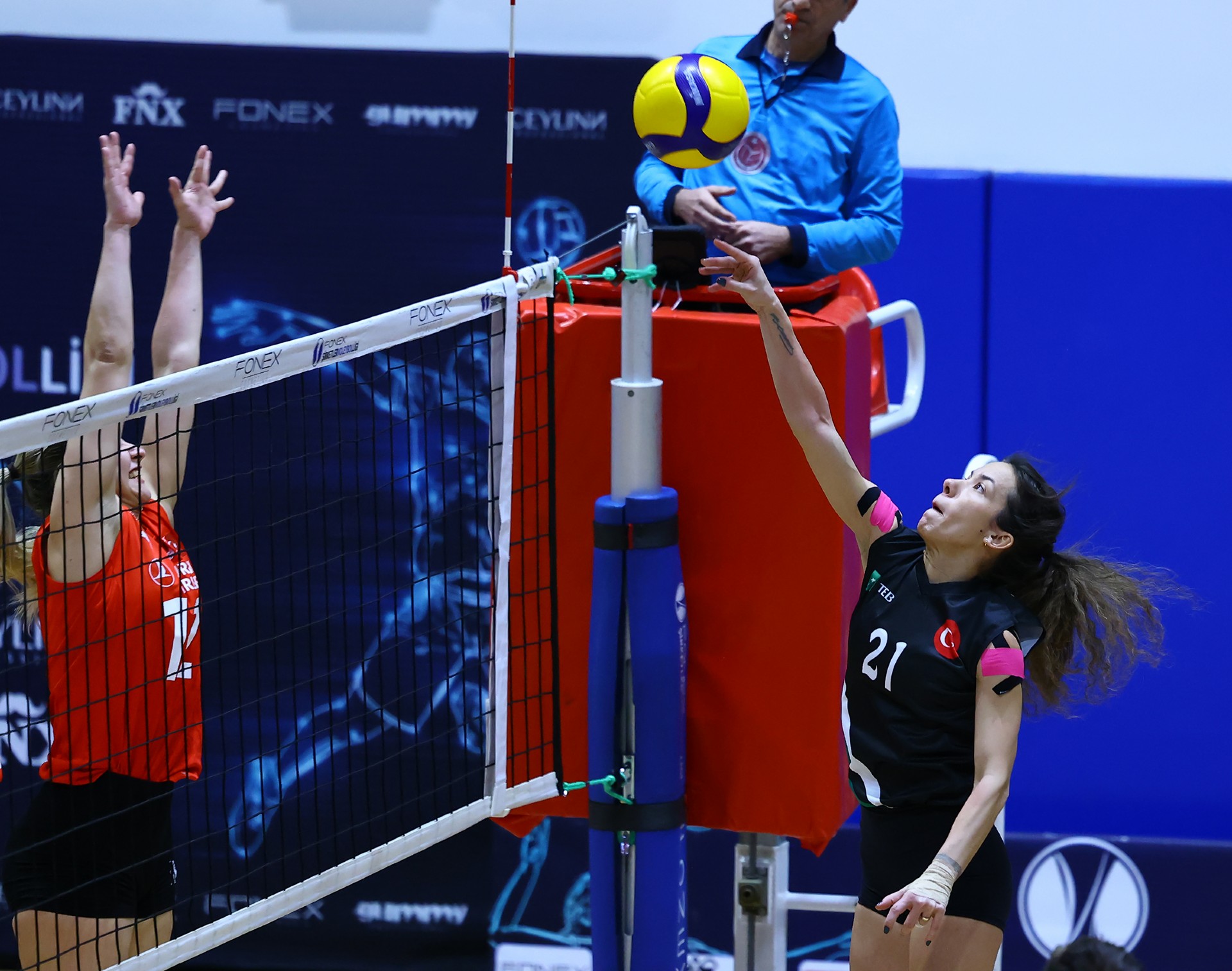 Üçüncü setin ilk sayısı TEB’den geldi. Sude’nin hücumu ve THY’nin hatasıyla TEB 1-3 öne geçti. Buse’nin dörtten etkili hücumlarıyla THY eşitliği yakaladı (5-5). Buse’den gelen aceyle THY iki sayılık avantaj sağladı (8-6). Ece’nin hücumuna Sude karşılık verirken TEB farkı bire indirdi. Ancak Buket, THY adına kritik bir sayı alarak üstünlüğü sürdürdü (11-9). Sude’nin servis sayısıyla denge bir kez daha sağlandı (12-12). Ceyda’nın servis turunda TEB önce eşitliği yakaladı, ardından Zeynep’in dörtten hücumuyla öne geçti (14-15). THY kaptanı Ezgi ile 17. sayıda dengeyi kursa da TEB hız kesmedi. Zeynep’in savunmadan THY sahasına gönderdiği top sayı olunca fark üçe çıktı ve THY molaya gitti (17-20). Mola sonrası Sude’nin akıl dolu plasesiyle TEB farkı açtı (17-22). Yağmur’un hücumu ve Berna’nın ace sayısıyla fark yediye yükseldi (17-24). TEB, üçüncü seti 25-18 kazanarak öne geçti.