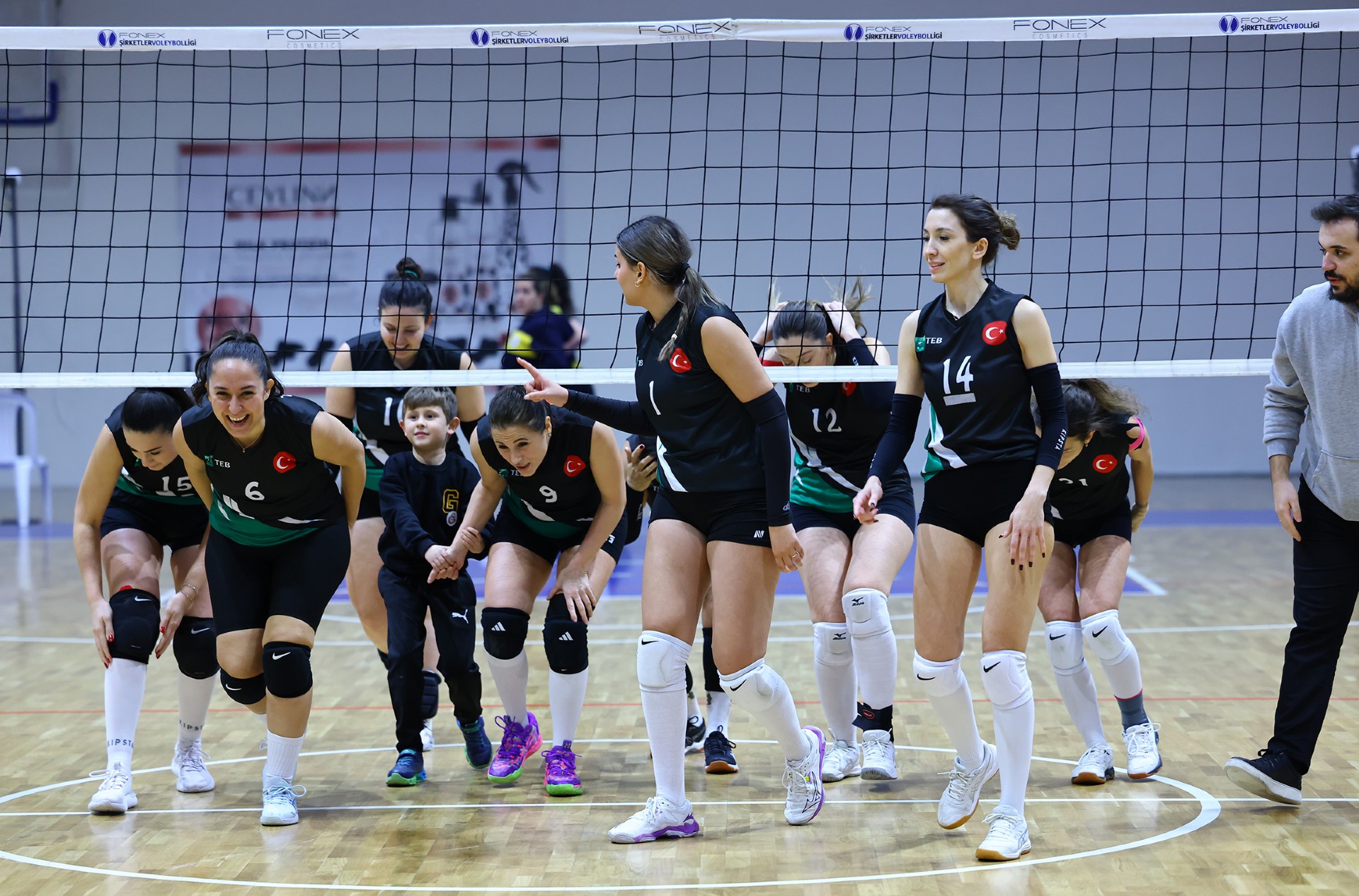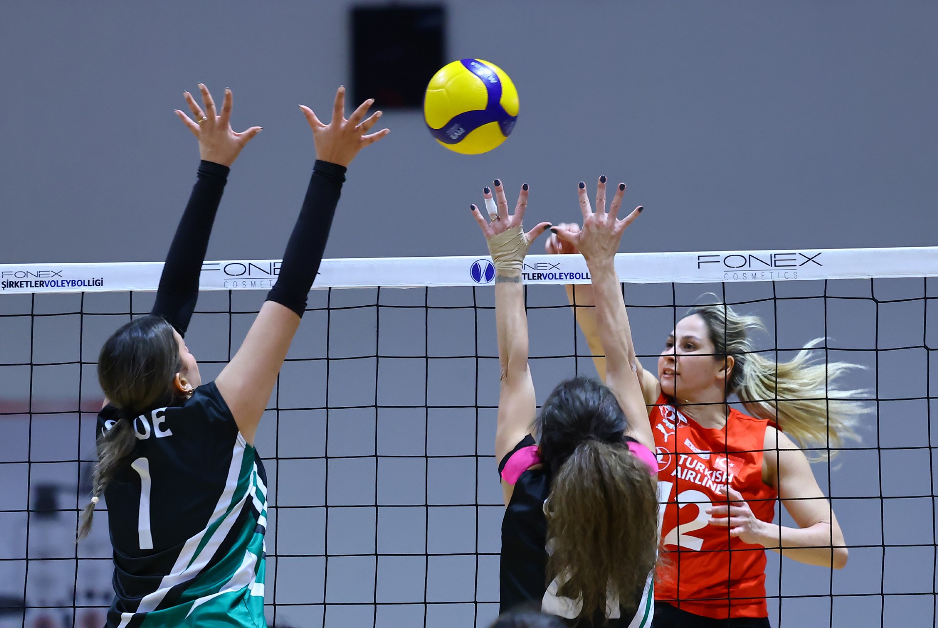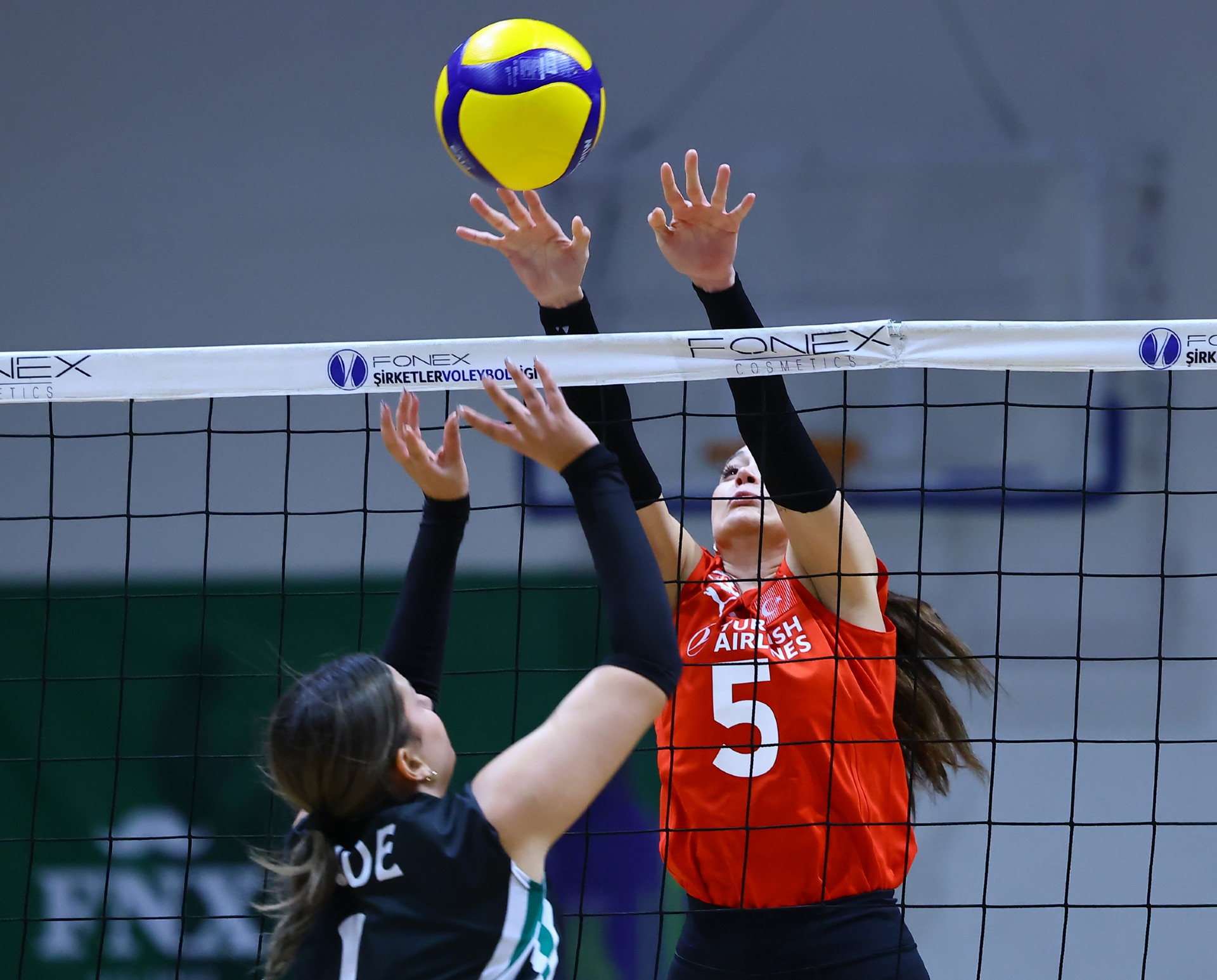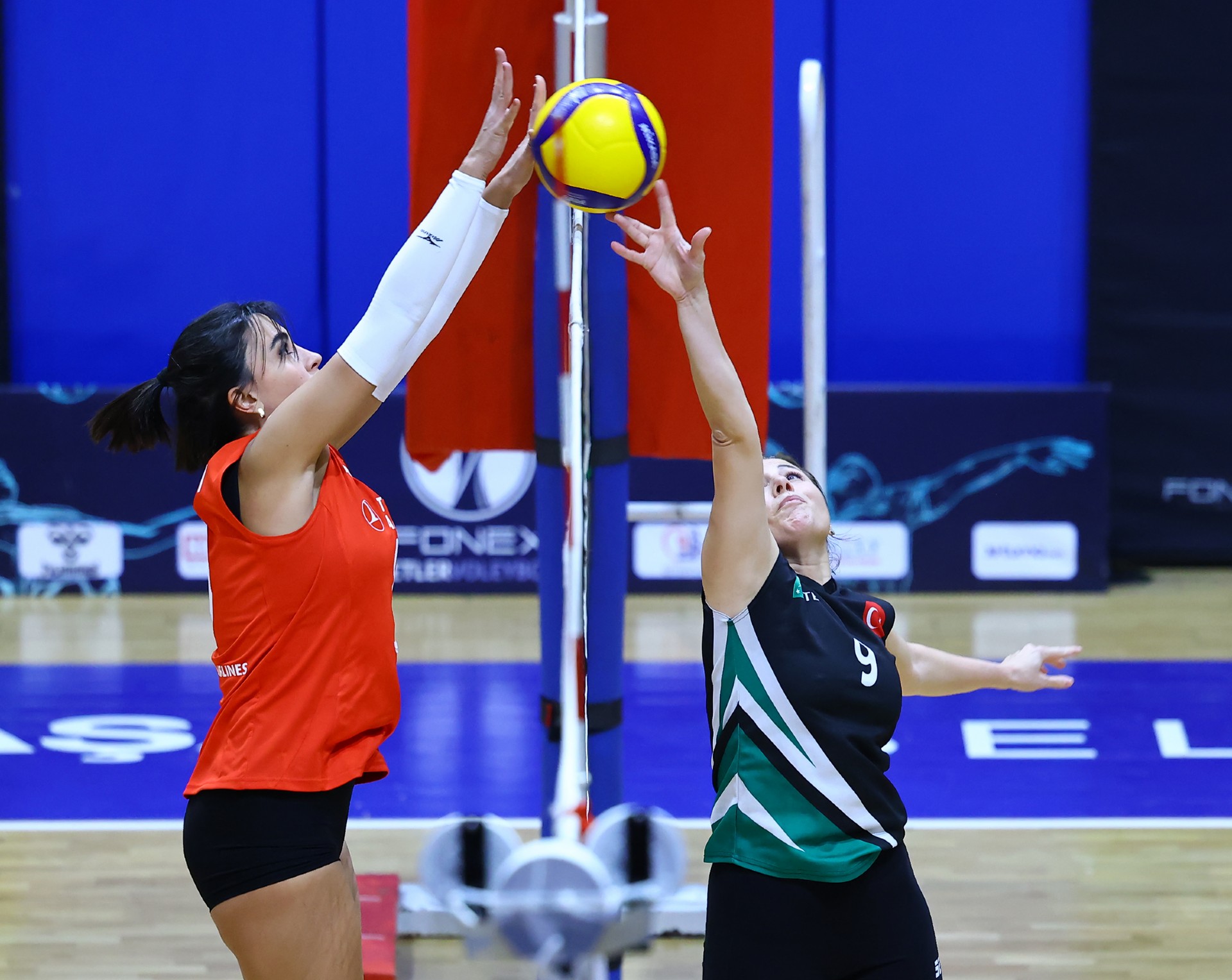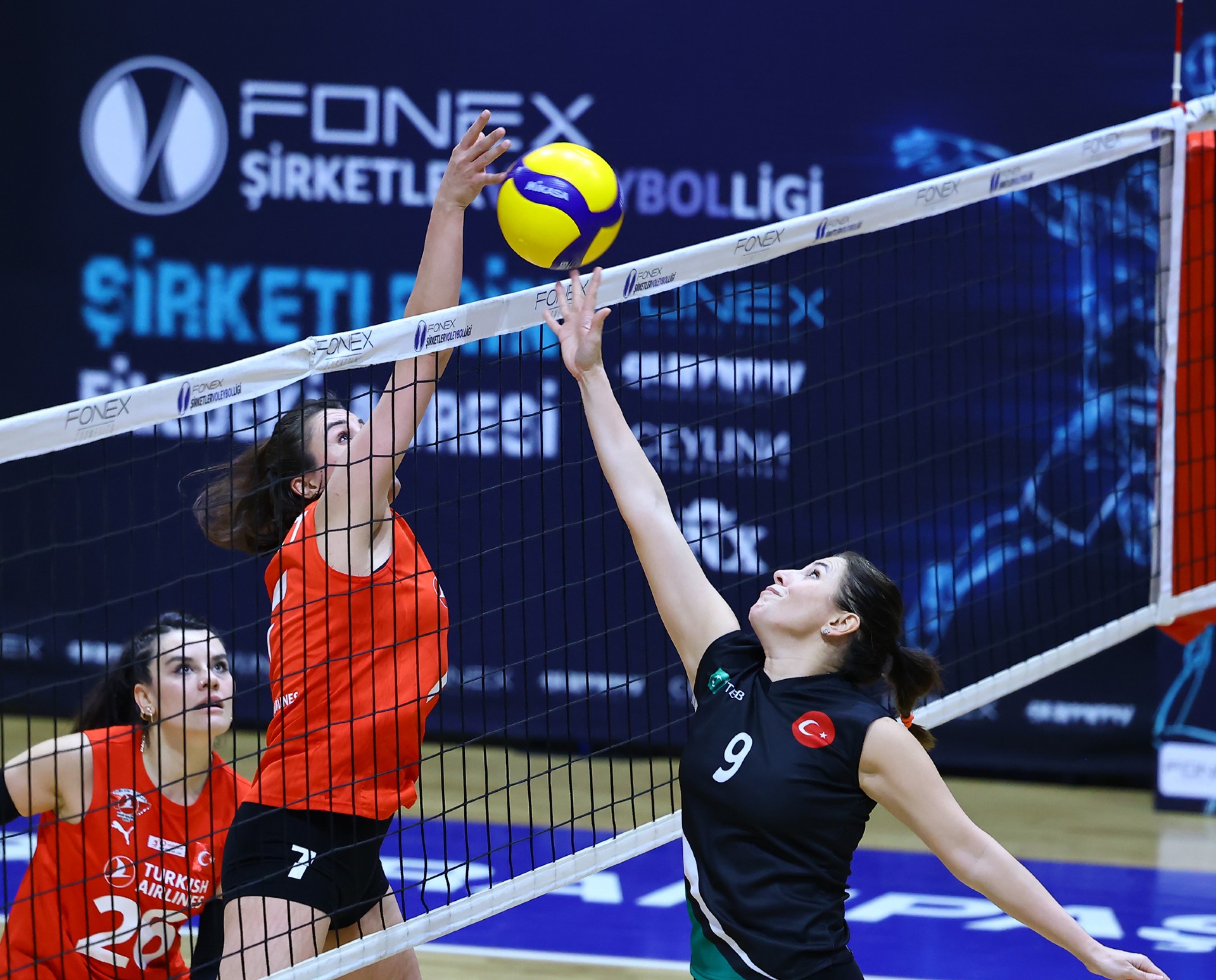 Müsabakada ilk sayı Yağmur’dan geldi. Ardından TEB’den üst üste gelen hatalar ve Ezgi’nin plasesiyle THY 3-1’lik üstünlüğü yakaladı. Devamında durum 4-1’e gelirken Ezgi, sayının kendisinden çıktığını belirtti ve sayı TEB’e verildi. Müsabakanın hakemi bu pozisyonda fair play kartını gösterdi (3-2). Ece’nin çapraza hücumu ile THY üstünlüğünü sürdürdü (5-4). Ceyda’nın servisle başladığı bölümde THY savunması iki kez etkili toplar çıkarsa da Berna, çapraza gönderdiği plaseyle eşitliği sağladı (8-8). İki takımın da birbirine üstünlük kuramadığı bu bölüm 10-10’luk eşitlikle geçildi. Berna’nın servis turunda seri yakalayan TEB, rakibine yalnızca bir sayı vererek etkili oyununu sürdürdü ve durumu 11-17’ye taşıdı. THY mola sonrası farkı üçe indirse de Sude’nin plasesiyle TEB avantajını korudu (14-18). Zeynep’in köşe hücumu farkı dörde çıkardı (17-21). TEB’in iyi savunması skora da yansırken THY 18-22’de son molasını aldı. Kaptan Zeynep ve ardından Yağmur’un sayılarıyla TEB set için servise geçti. Zeynep’in bir ace sayısı daha gelince ilk set TEB’in oldu (18-25).