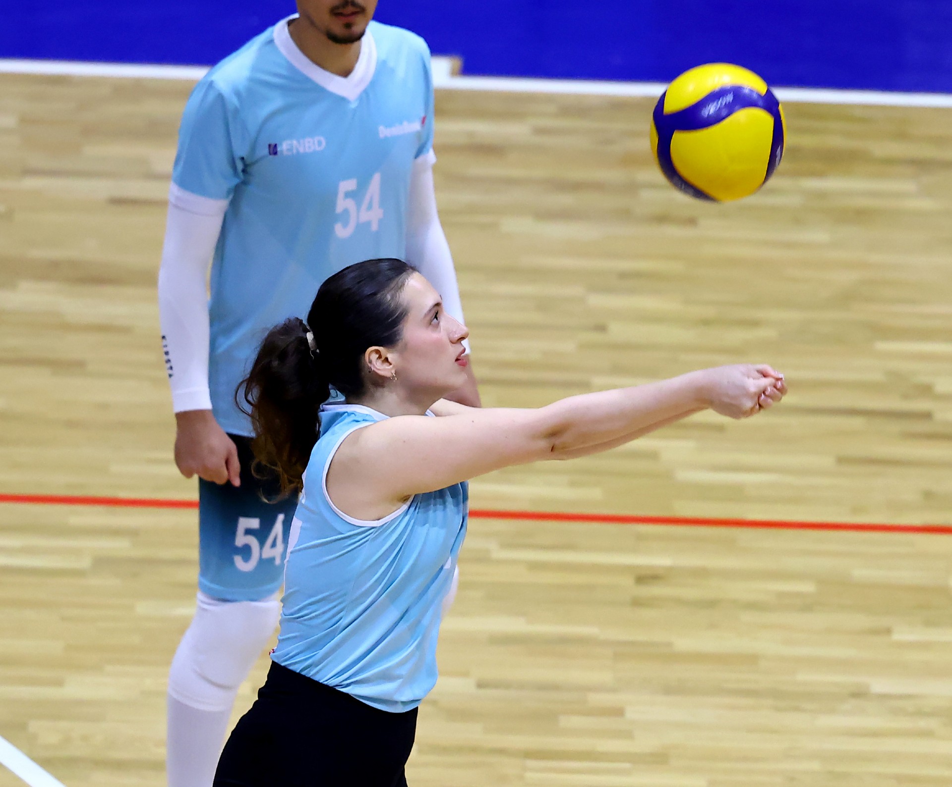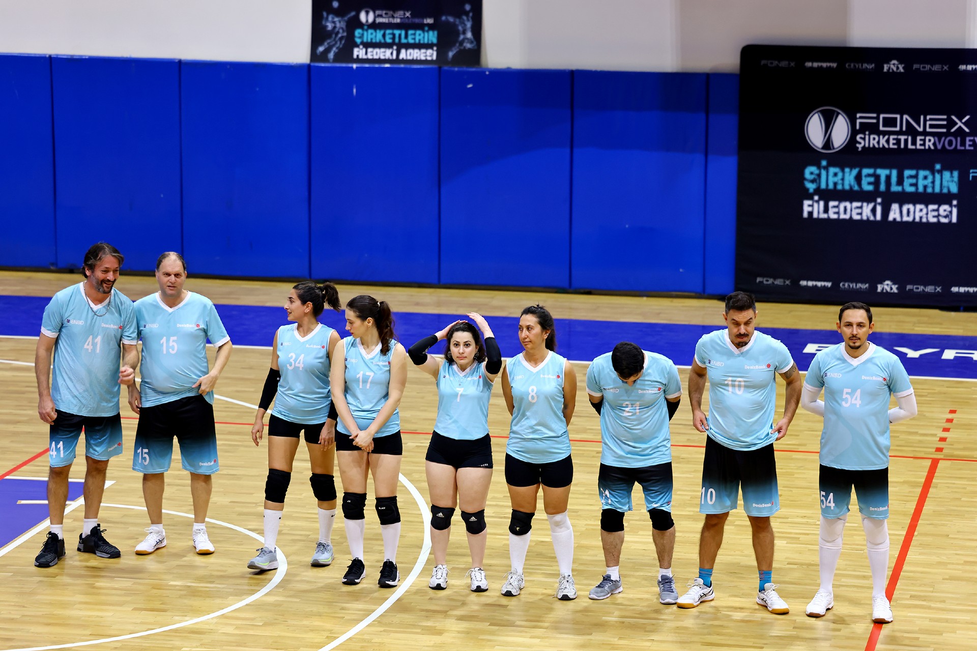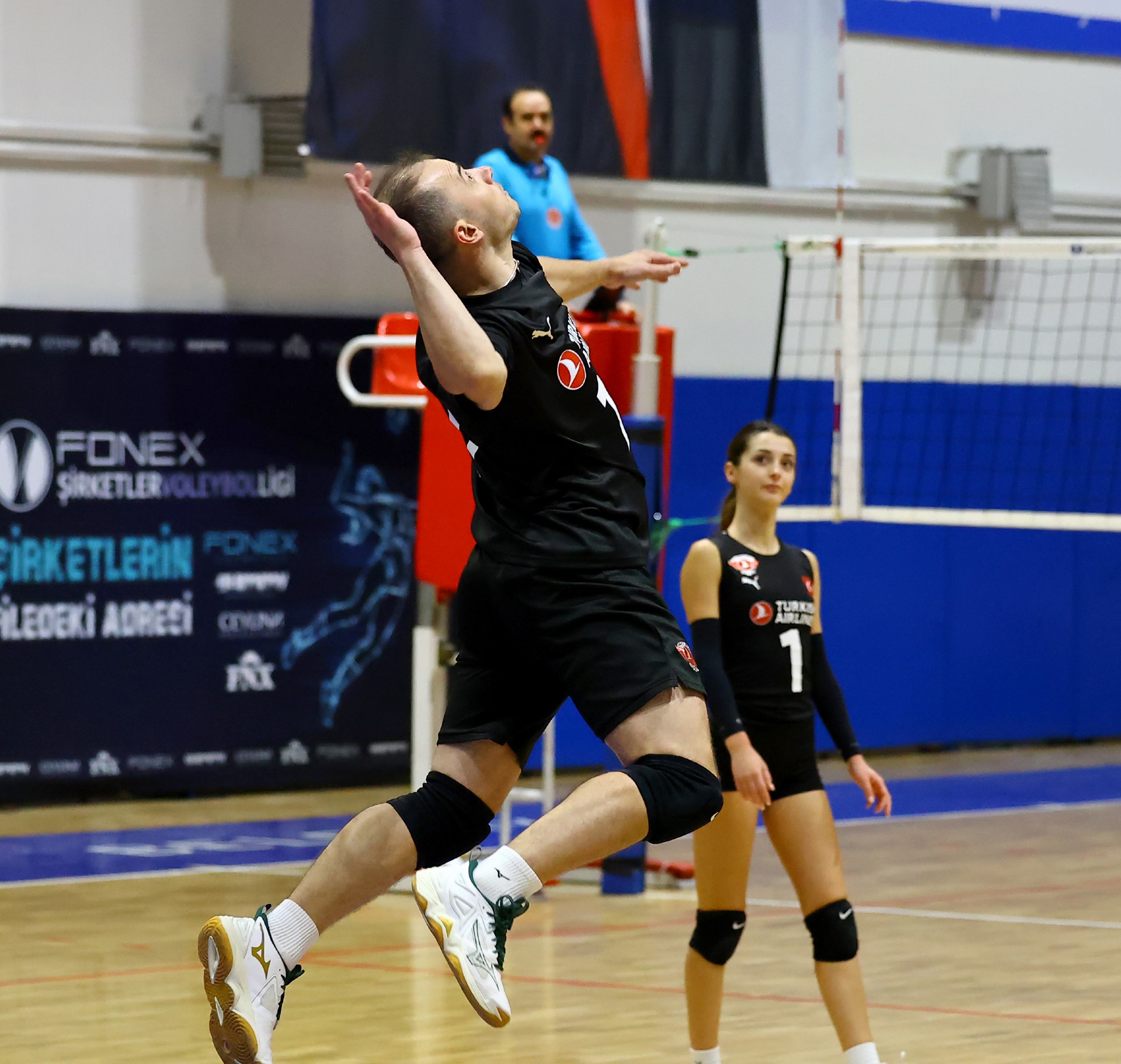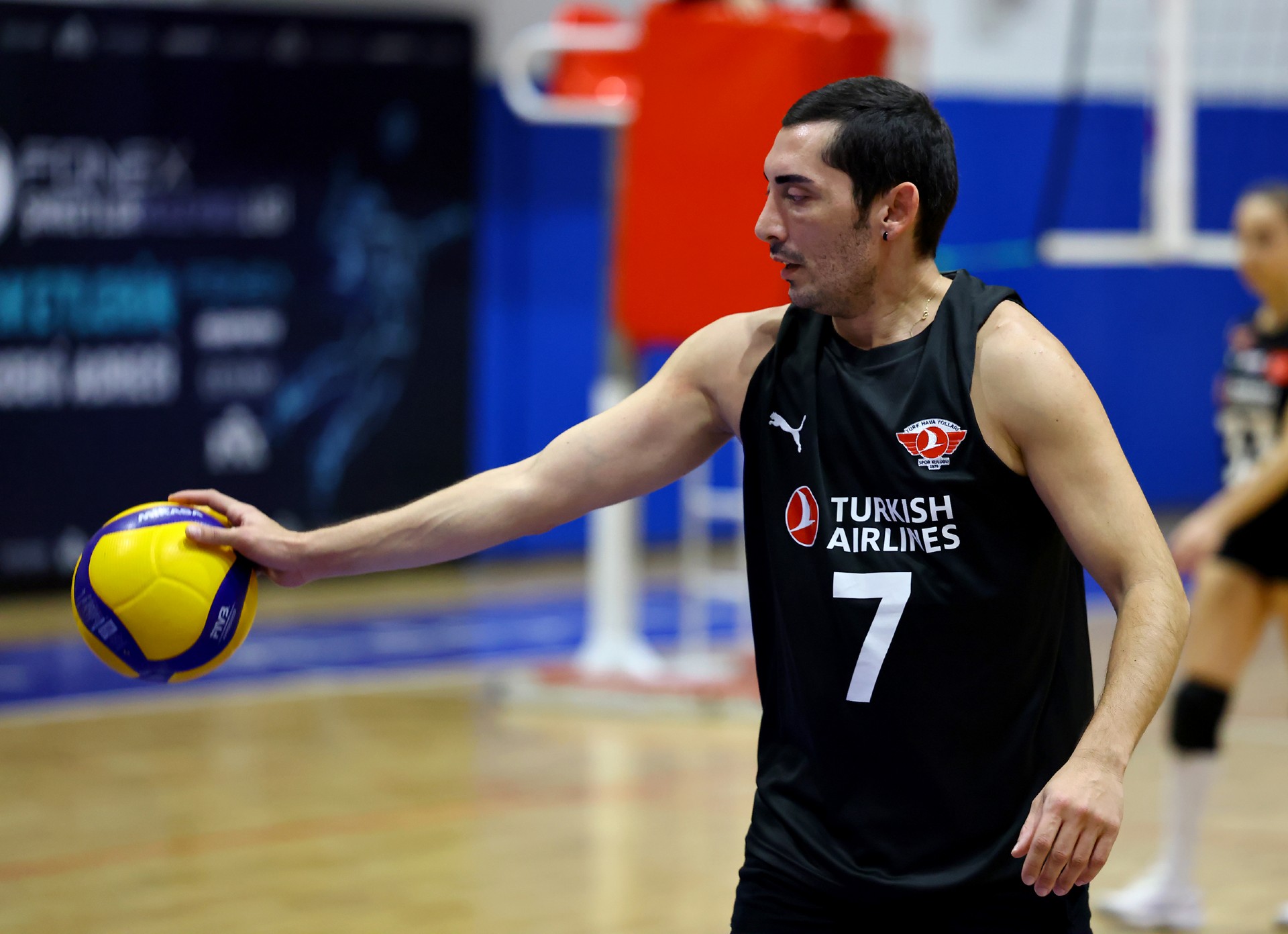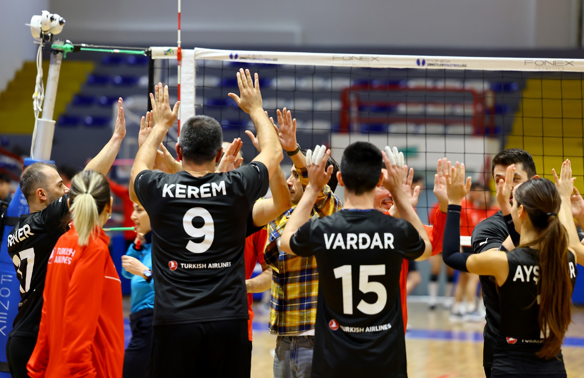 Müsabakanın ilk sayısı Tolga’nın hücumu ile gelirken, ikiden yapılan etkili hücumla Türk Hava Yolları (THY) skoru 2-0 yaptı. Serhat’ın çapraza gönderdiği plase ve THY’nin hücum hatalarıyla skor 5-4’e kadar geldi. Yiğit’in servis serisinde fark dört sayıya çıktı (8-4). Karşılıklı sayılar sürerken fark kapanmadı (12-8). Nurhan’ın servis turunda Denizbank farkı ikiye indirdi (12-10). Ömer’in servis serisinde Tolga ve Ayşe üzerinden üretilen sayılarla THY farkı yeniden açarak skoru 20-11 yaptı. Serhat’ın ace sayısı Denizbank’ı sette tutmaya çalışsa da (22-15), THY üstünlüğünü korudu ve Denizbank’ın servisi fileye takmasıyla ilk seti 25-19 kazandı.