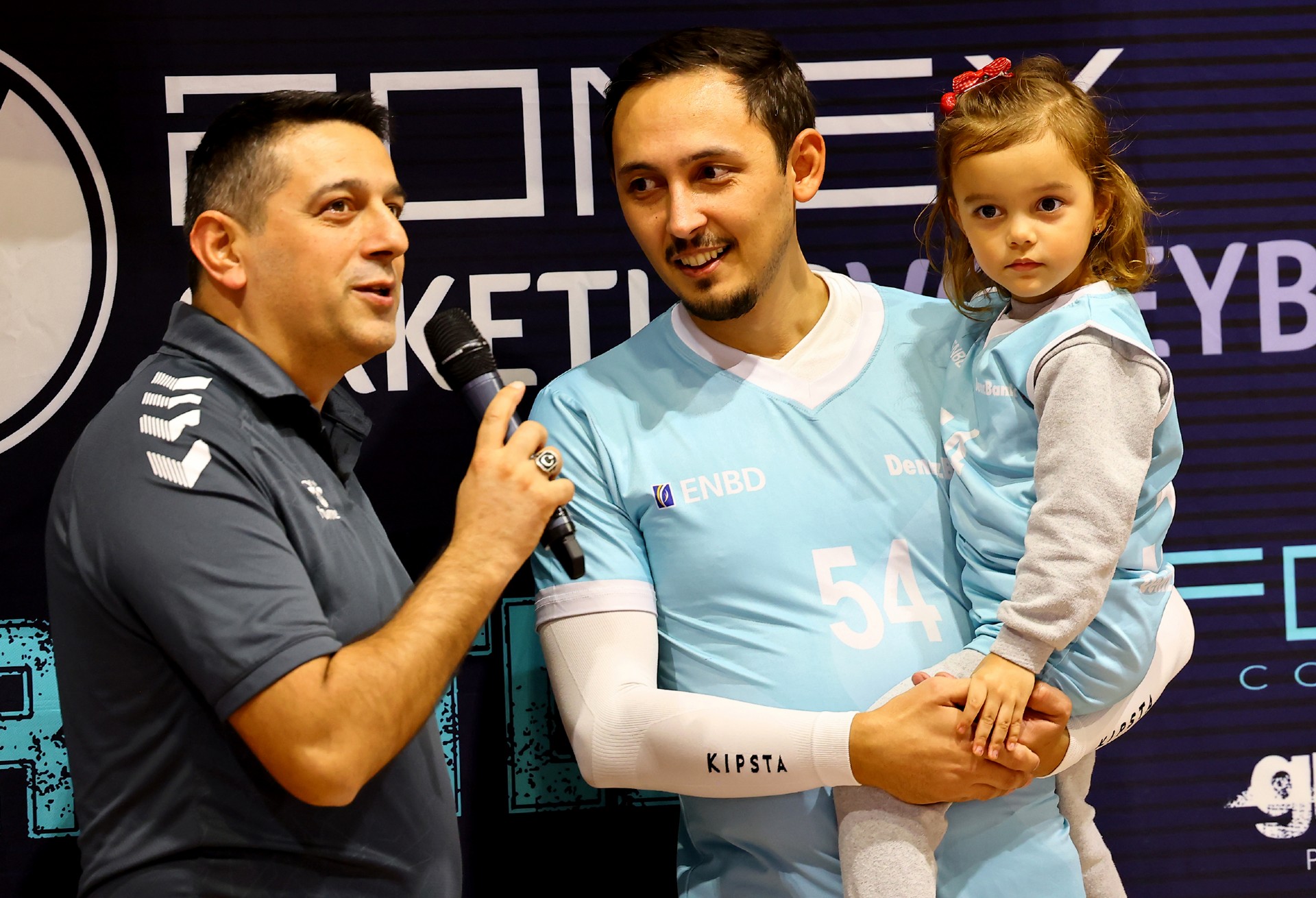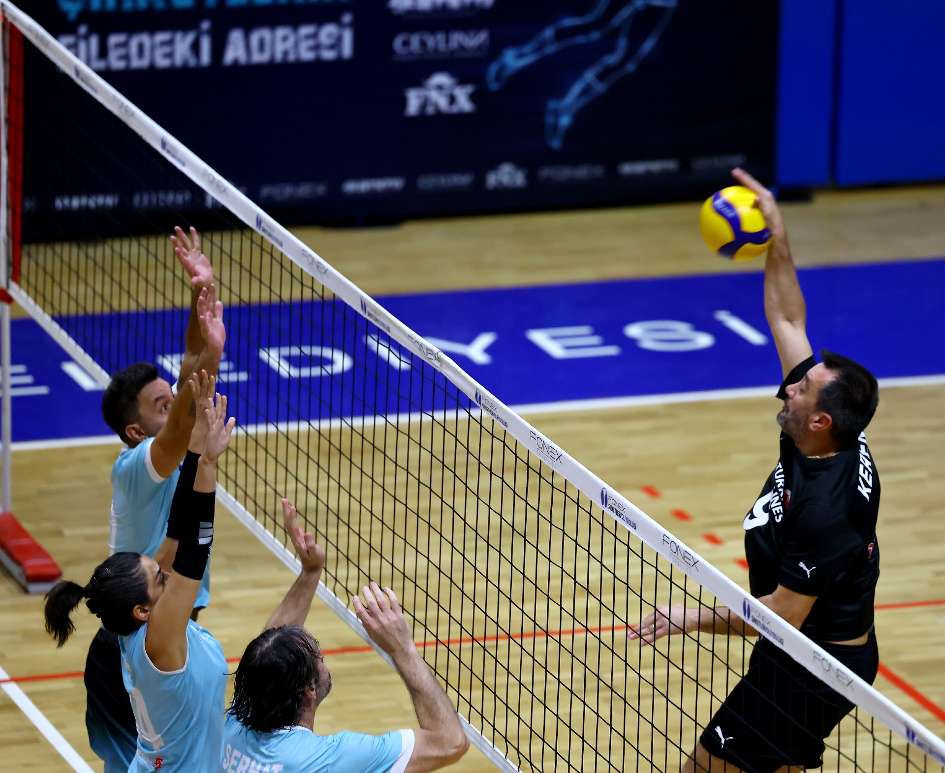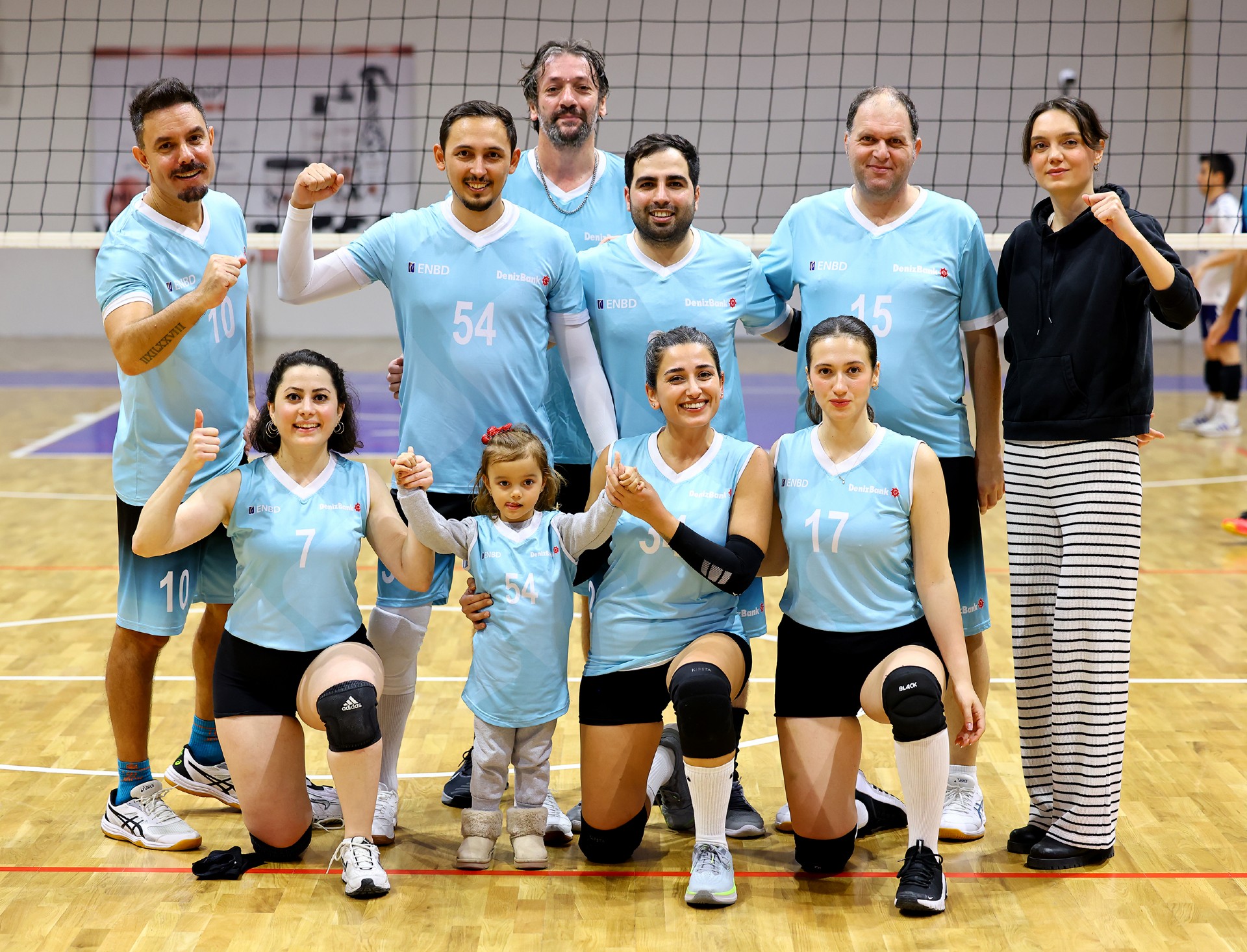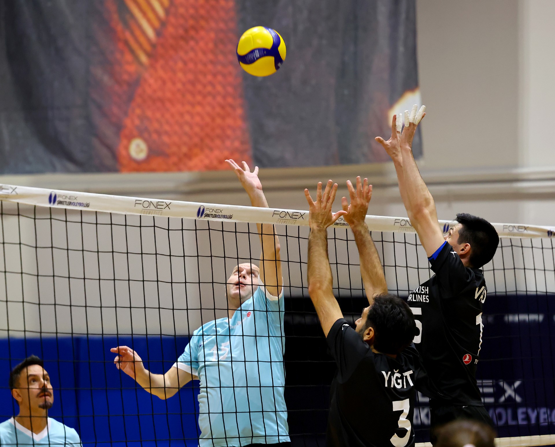 Müsabakanın ilk sayısı Tolga’nın hücumu ile gelirken, ikiden yapılan etkili hücumla Türk Hava Yolları (THY) skoru 2-0 yaptı. Serhat’ın çapraza gönderdiği plase ve THY’nin hücum hatalarıyla skor 5-4’e kadar geldi. Yiğit’in servis serisinde fark dört sayıya çıktı (8-4). Karşılıklı sayılar sürerken fark kapanmadı (12-8). Nurhan’ın servis turunda Denizbank farkı ikiye indirdi (12-10). Ömer’in servis serisinde Tolga ve Ayşe üzerinden üretilen sayılarla THY farkı yeniden açarak skoru 20-11 yaptı. Serhat’ın ace sayısı Denizbank’ı sette tutmaya çalışsa da (22-15), THY üstünlüğünü korudu ve Denizbank’ın servisi fileye takmasıyla ilk seti 25-19 kazandı.