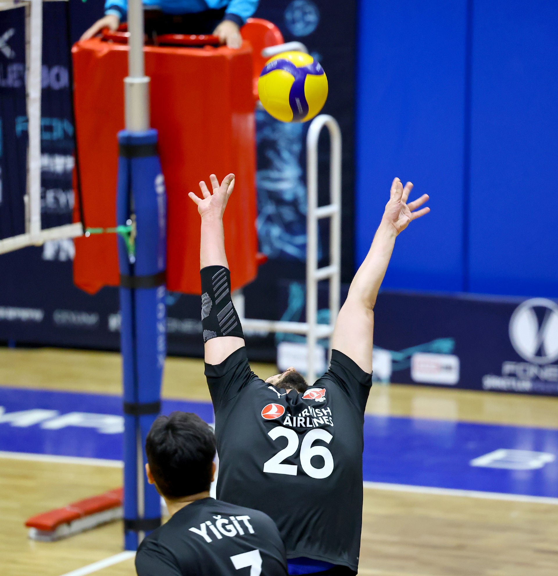 İkinci sete iyi başlayan Denizbank, Serhat’ın ace sayılarıyla 0-3 öne geçti. Mert’in arkadaki boşluğu iyi değerlendirmesiyle Denizbank farkın açılmasını engelledi (2-5). THY altıncı sayıda eşitliği sağladı. Denizbank, Serhat ve Ekrem’den aldığı katkıyla skoru 7-11’e taşıyınca THY molaya gitti. Mola dönüşü Cenk’in servis serisinde dört sayı alan THY üstünlüğü eline aldı (12-11). Kerem ve Emir’in oyuna girmesiyle tempo yükseldi; THY farkı altı sayıya kadar çıkardı (18-12). Moladan sonra da hız kesmeyen THY, Emir’in etkili hücumlarıyla skoru 23-14’e getirdi. Denizbank’ın servis hatasıyla ikinci set de 25-17 THY’nin oldu.