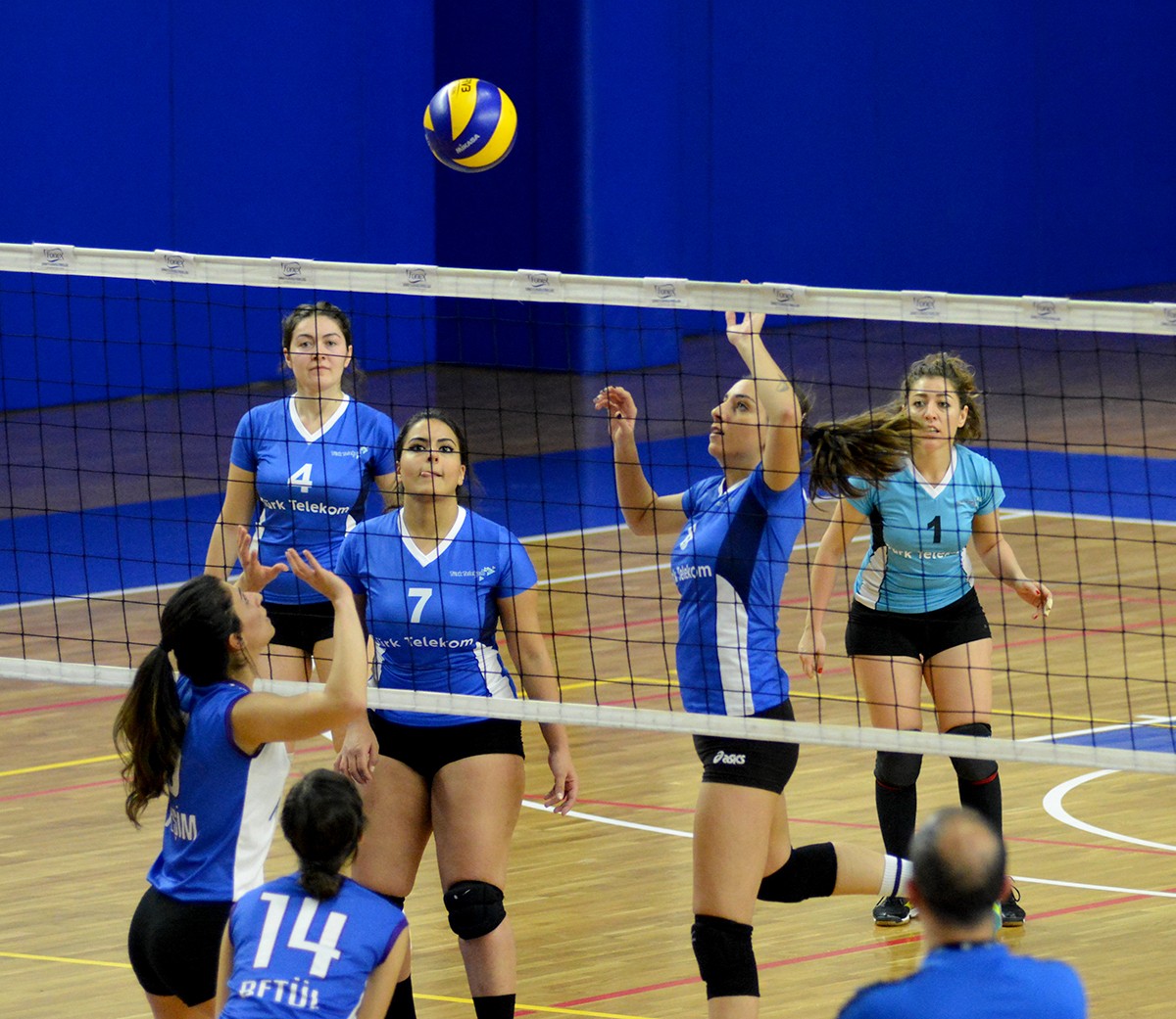 Maça iyi başlayan taraf KPMG oldu, üst üste gelen sayılarla skor 1-3'e geldi. Ancak oyunda dengeyi kuran Türk Telekom beş sayılık seriyle durumu 6-3'e getirdi. Birsin'in sert smacında skor 9-4'e gelirken KPMG takımı ilk molayı alan taraf oldu. Münteha'nın etkili smacının ardından Türk Telekom'da savunmada yapılan hatalar sonrası durum 9-7'ye geldi. Aslıhan'ın plasesi ile teknik molaya 12-7 önde giren taraf Türk Telekom oldu. Eda'nın smacı, Aslıhan'ın etkili servisi sonrası KPMG ikinci molasını istedi (17-9). Türk Telekom'da set sonuna doğru Seçil'in etkili smaçları durumu 22-13'e kadar getirdi. Sette son sayı Aslıhan'ın smacından geldi (25-15).