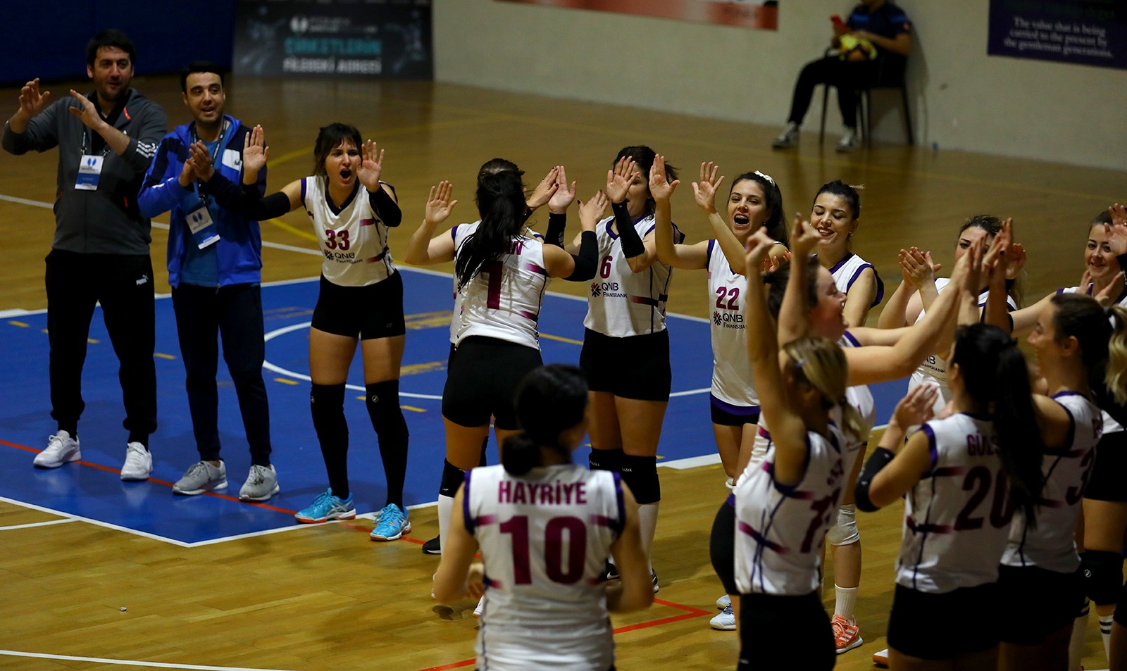 Son şampiyon maça iyi başladı. Eda Naz'ın ortadan sert smacıyla skor 7-3 oldu. QNB Finansbank fileyi geçmekte zorluk yaşayınca Türk Telekom farkı açarak skoru 11-4 yaptı. Türk Telekom ilk seti 25-6 kazandı.