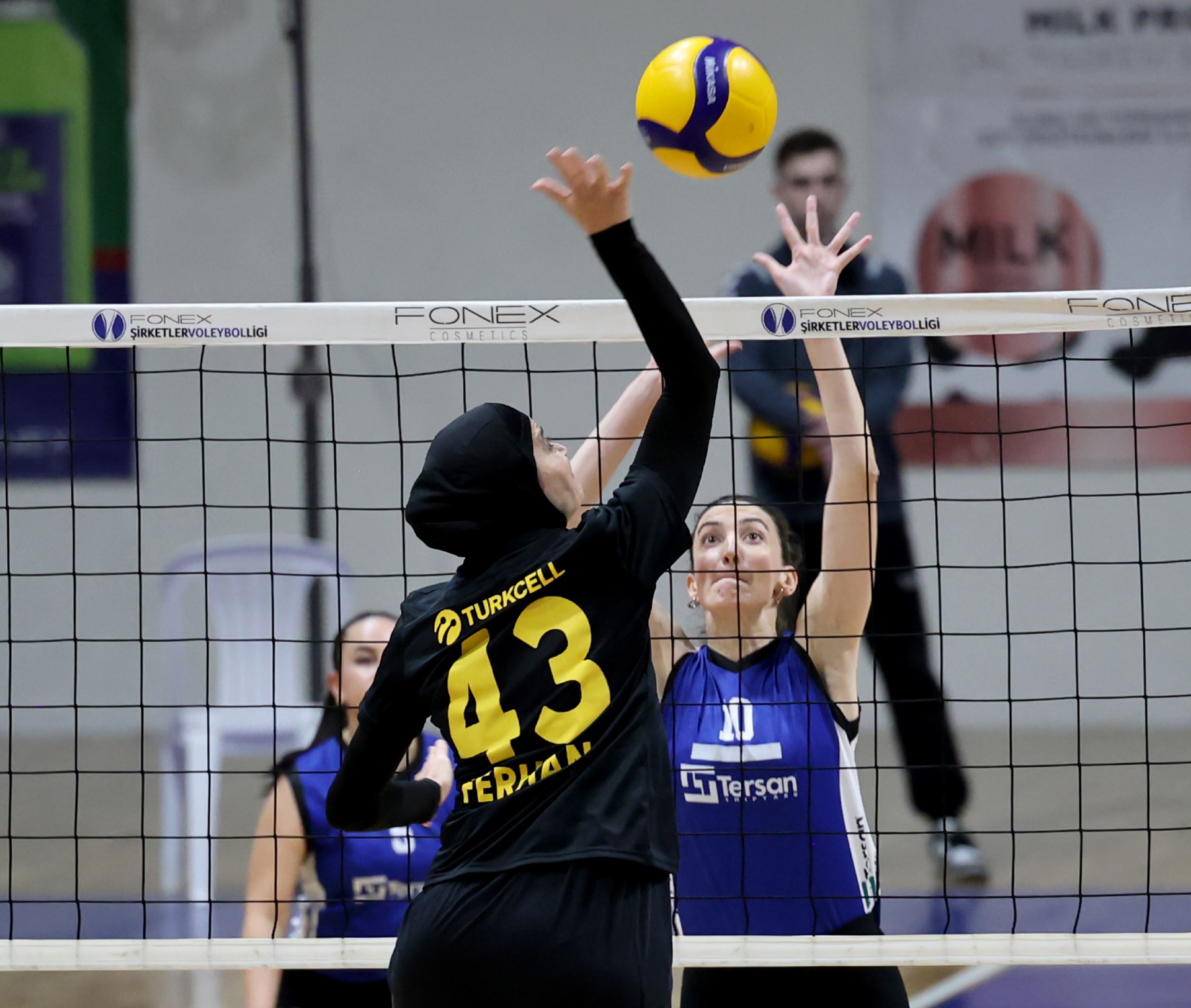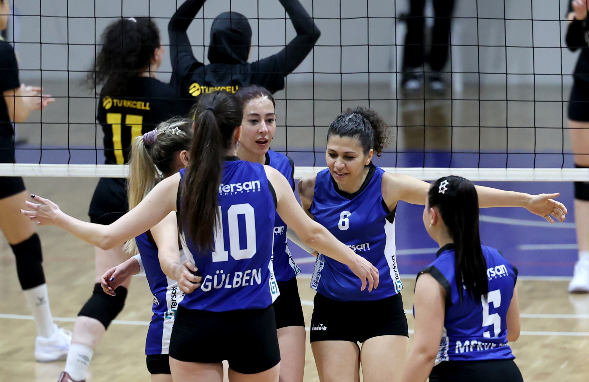 Ligin yeni ekibi müsabakaya çok heyecanlı başladı, karar anlarında bu hücum tercihlerine de yansıdı Turkcell skoru 9-1’e kadar getirdi. Aleyna’nın servis turunda toparlanan Tersan üç sayılık bir seri yakaladı (9-4). Tersan farkı kapatmak için yaptığı hücumlarda basit hatalar yapınca skor 12-6 oldu. Merve’nin etkili servisleri Gülben’in etkili hücumlarıyla maça ısınan Tersan farkı dört sayıya kadar düşürdü (13-9). Karşılıklı sayılar devam etti fark kapanmadı (17-13). Zeliha’nın çapraza plasesiyle 18-16’ye gelindi. Karşılıklı basit hataların olduğu bölümde Turkcell farkı açan takım oldu (22-17). Gülben ve Beyza üzerinden kritik sayılar alan Tersan, Turkcell’den de gelen basit hatalar sonucunda farkı bir sayıya indirdi (22-21). Toparlanan Turkcell Ayşe’nin servisiyle seti bitirdi (25-21).
