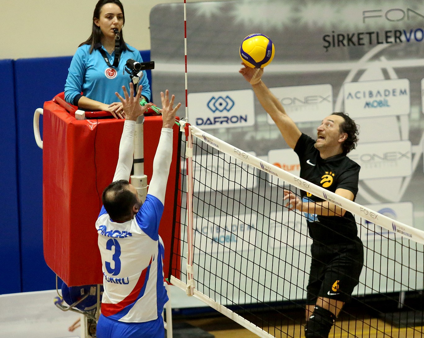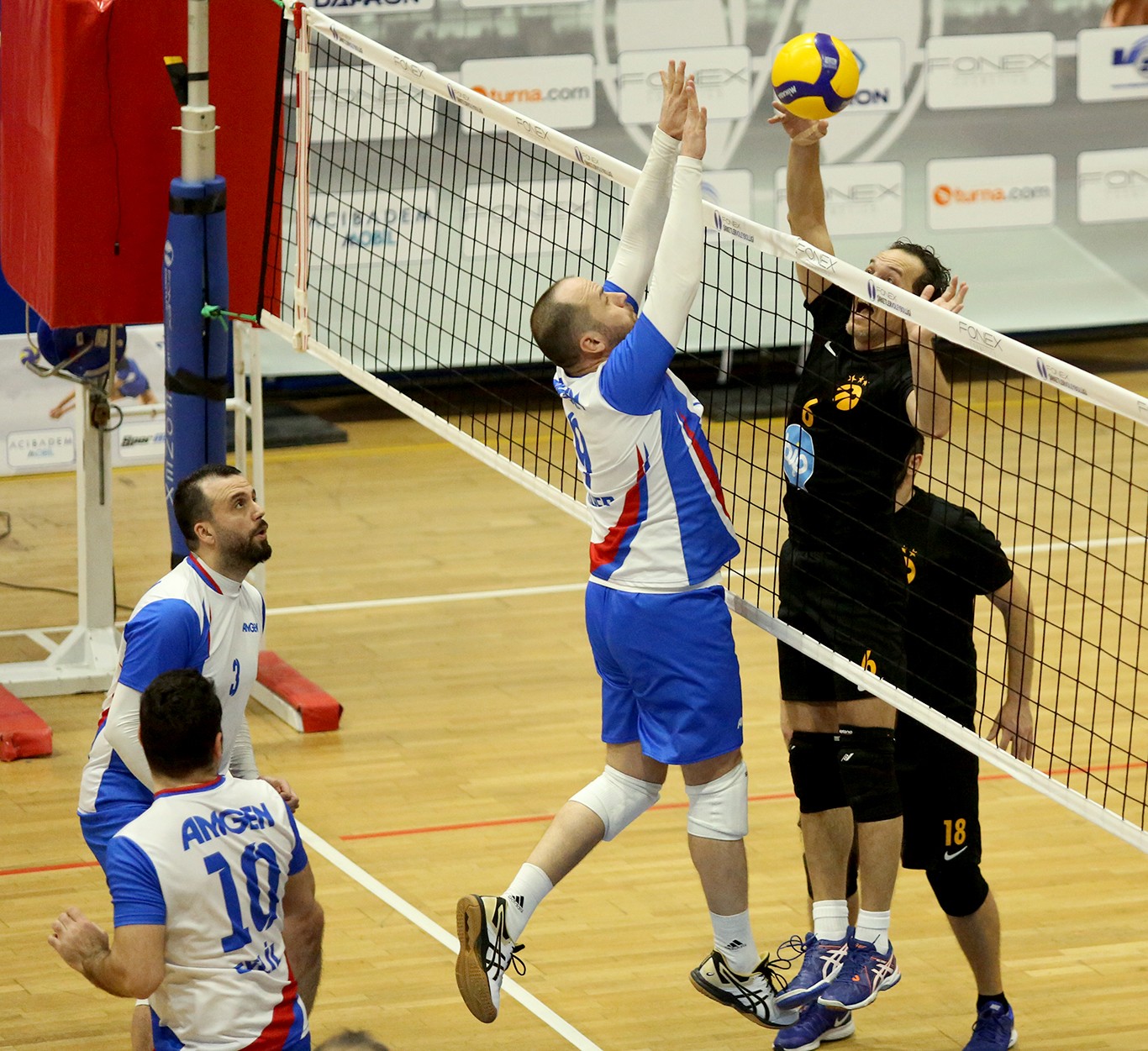Maça istekli başlayan Turkcell oldu (7-2). Taner'in asistlerini 4 numaradan smaçlarla tamamlayan Fırat skoru 12-7'ye taşıdı. Taner'in servisleri Fırat'ın smaçlarıyla skor 16-9'u görünce Amgen Türkiye molası geldi. Kalan bölümde de üstünlüğü elden bırakmayan Turkcell Barış Ölmez'in de katkısıyla ilk setin galibi oldu (25-14).